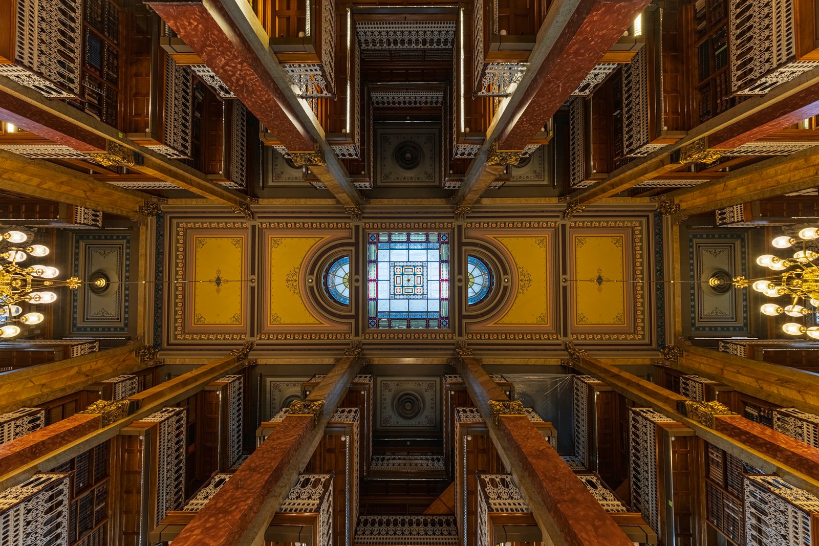 13 The State Law Library inside the Iowa State Capitol is one of the building’s most celebrated interior spaces, renowned for both its history and architectural beauty. Established alongside the Capitol’s completion in the 1880s, the library reflects the grandeur of the era with its Victorian design, featuring four tiers of cast-iron spiral staircases, ornamental railings, and balconies that rise dramatically around the reading room. Its tall arched windows flood the space with natural light, highlighting the marble floors, richly carved woodwork, and decorative details that emphasize elegance and craftsmanship.