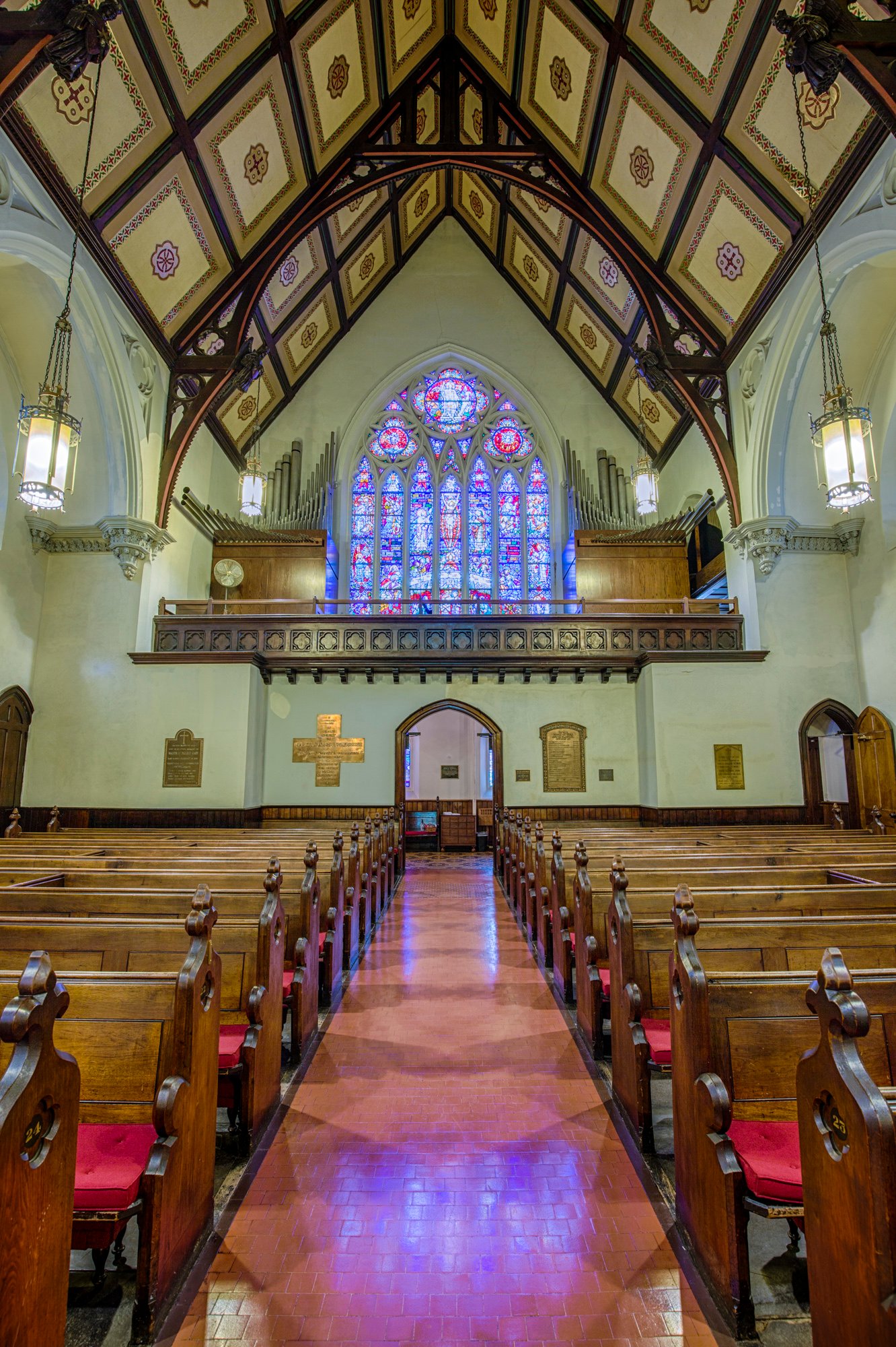 In the late 1920s, Trinity began considering renovation of its 1866 structure. However, congregant Charles Gauss stepped forward and offered to finance the building of a new church.[6] The old church was demolished, and the cornerstone of the current church was laid in 1929 with the dedication held on February 15, 1931.