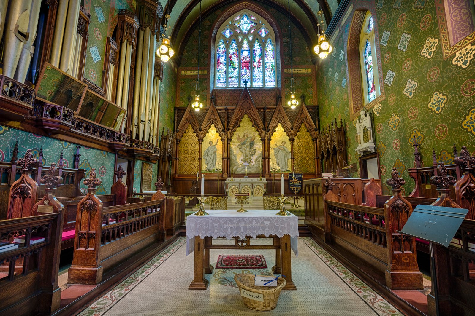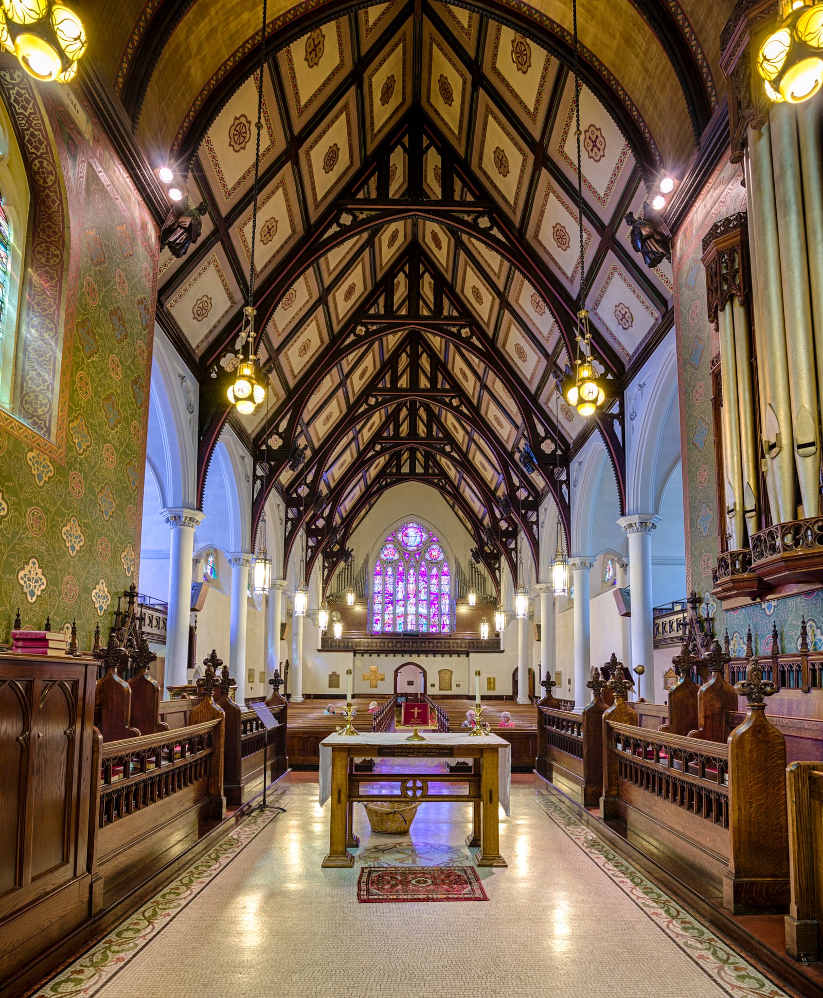 The Trinity congregation was formed in 1850, when members of St. Matthew's Lutheran Church, a German-speaking congregation, broke from the main body following the excommunication of another member. Services were first held in the chapel of Christ Episcopal Church, located at the corner of Jefferson and Hastings. Soon, the congregation bought the chapel of the Western Seaman's Friend Society of Woodbridge Street, and moved it to Rivard and Larned. This building quickly proved too small, the congregation built a new brick church at Gratiot and Rivard in 1866. This area, surrounding Eastern Market, was at the time home to a large German population and a natural fit for Trinity.