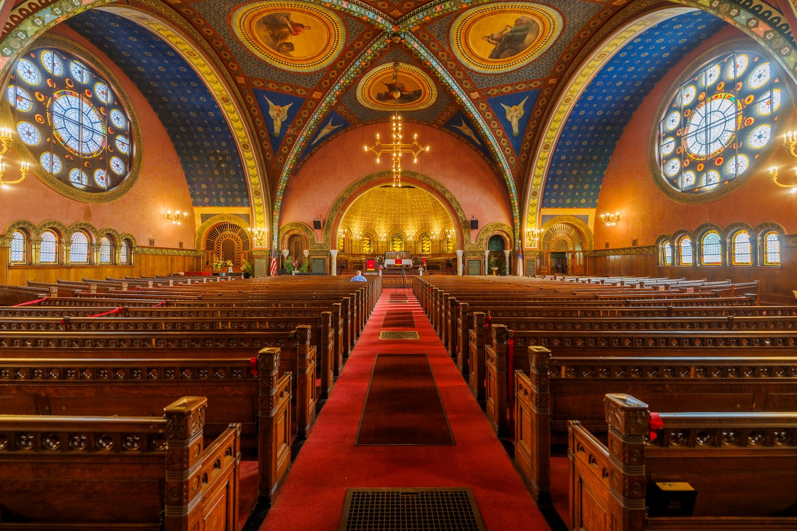 The architecture of the First Congregational Church is a stunning example of Gothic Revival style. Designed by Gordon W. Lloyd, the church features a prominent bell tower and soaring spires. The intricate stonework on the exterior is complemented by ornate stained glass windows that depict scenes from the Bible. The interior of the church is equally impressive, with its vaulted ceiling, grand arches, and elegant woodwork. The church has undergone several renovations over the years, including the addition of a new chapel and offices. Despite these changes, the church has retained its historical charm and remains a beloved landmark in Detroit.