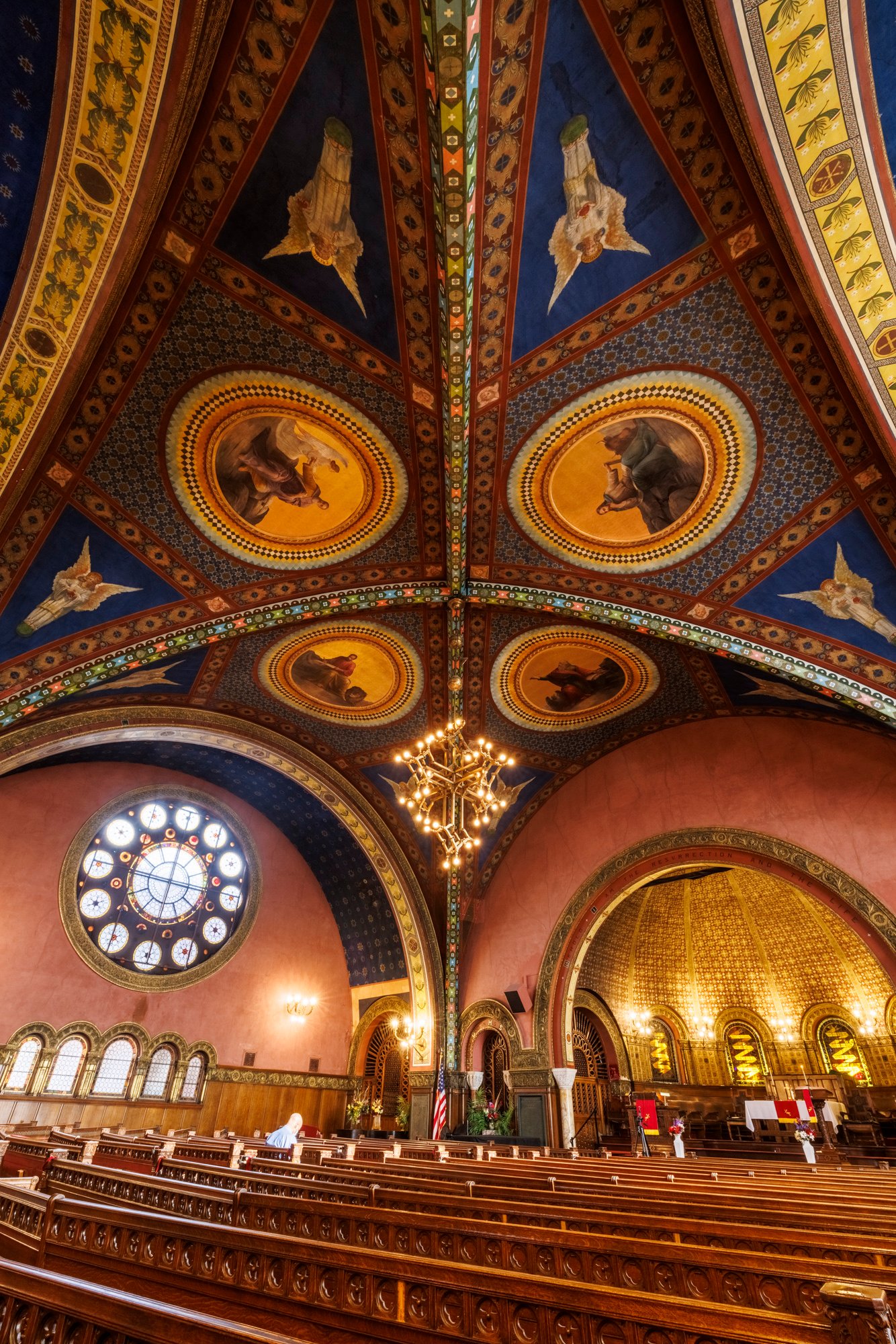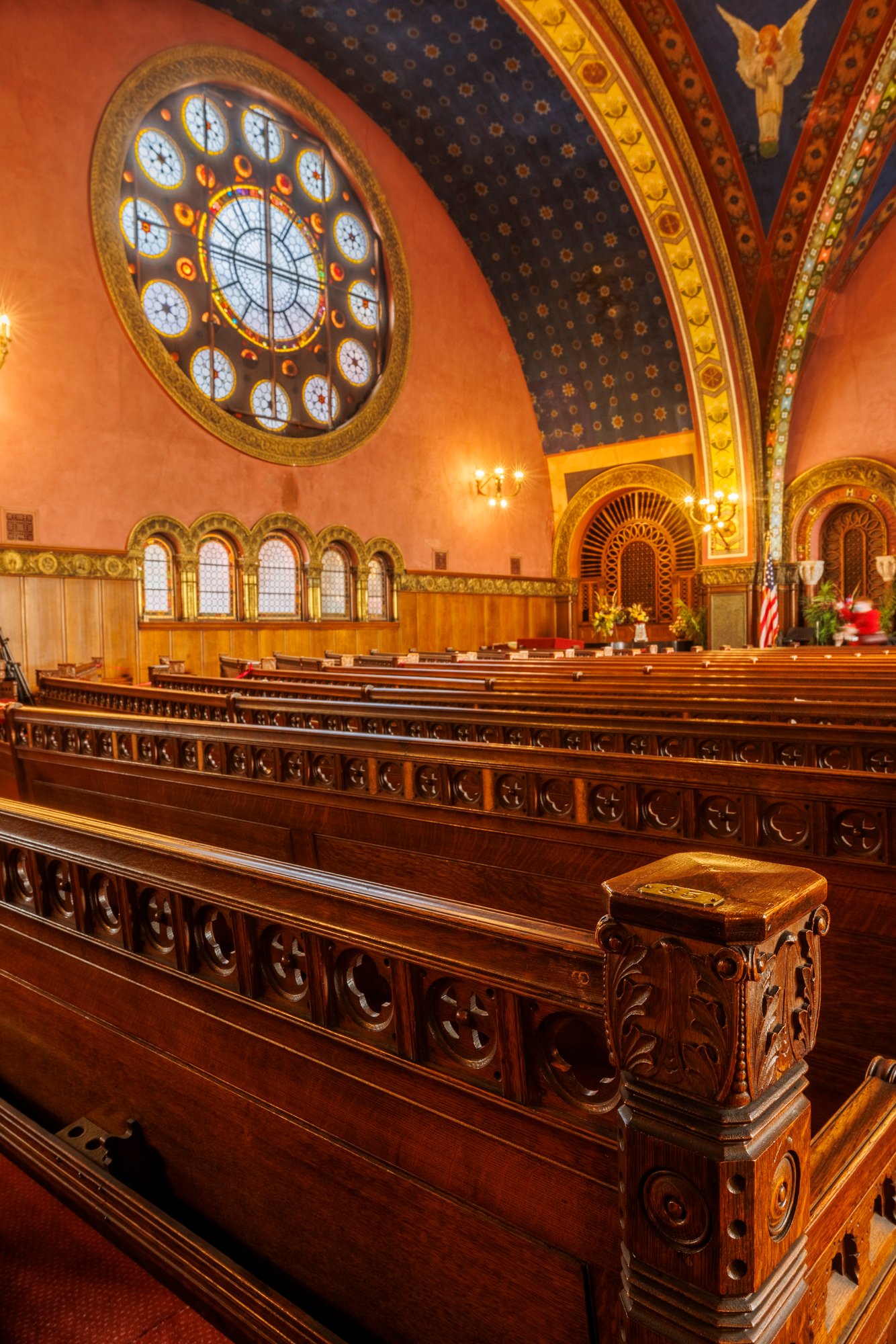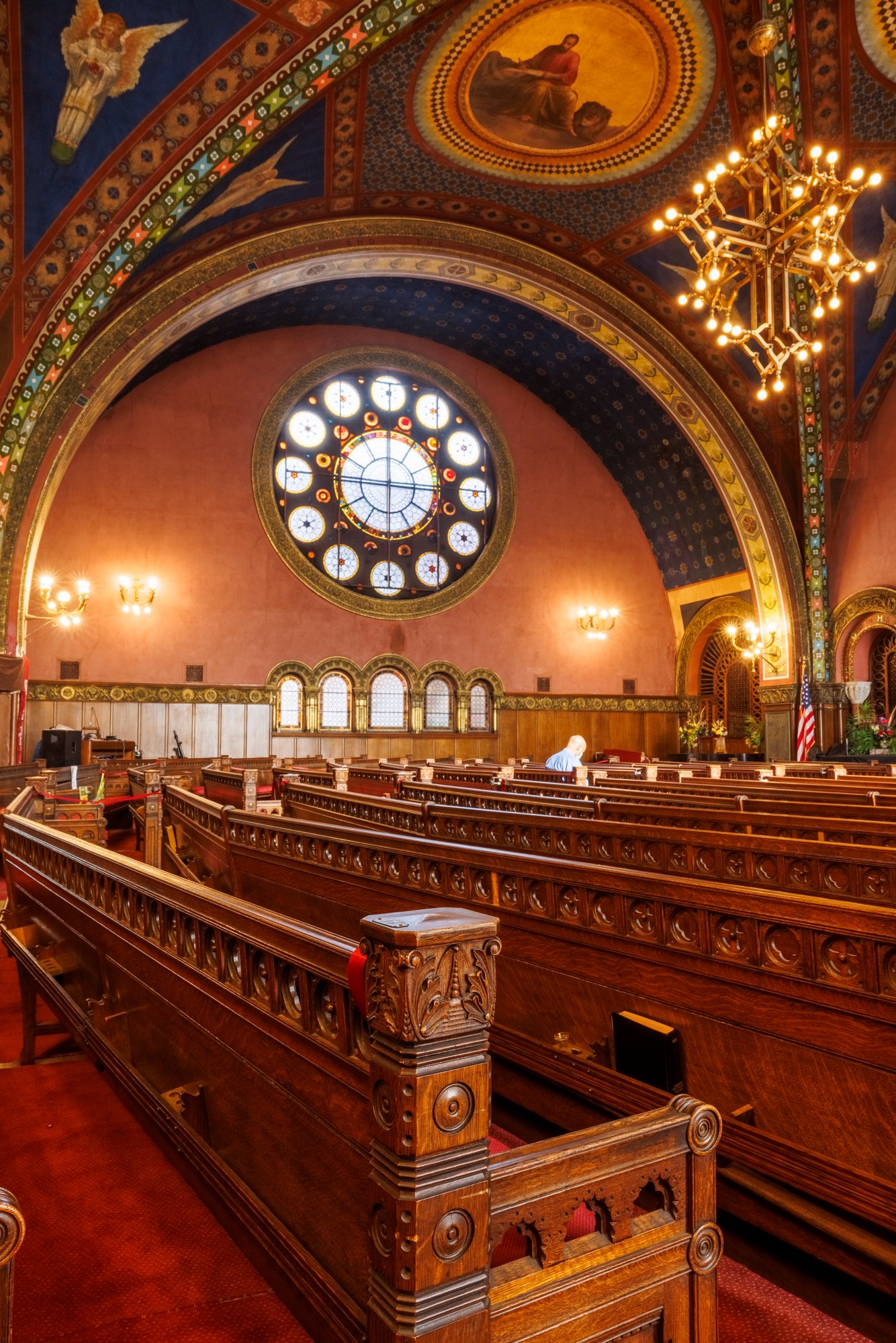 The architecture of the First Congregational Church is a stunning example of Gothic Revival style. Designed by Gordon W. Lloyd, the church features a prominent bell tower and soaring spires. The intricate stonework on the exterior is complemented by ornate stained glass windows that depict scenes from the Bible. The interior of the church is equally impressive, with its vaulted ceiling, grand arches, and elegant woodwork. The church has undergone several renovations over the years, including the addition of a new chapel and offices. Despite these changes, the church has retained its historical charm and remains a beloved landmark in Detroit., located in Detroit, Michigan, was founded in 1824. It is the oldest continuously operating Protestant church in the city. The church was initially established by a group of Congregationalists who were part of the New England emigration to the West. Over time, the church has played an integral role in the community, providing social, educational, and religious services to the people of Detroit. The church has a rich history of social activism, supporting the abolitionist movement and serving as a sanctuary for runaway slaves during the Underground Railroad era. In recent years, the church has continued to focus on social justice issues and has been involved in numerous community outreach programs, including those aimed at ending homelessness and poverty in the city.