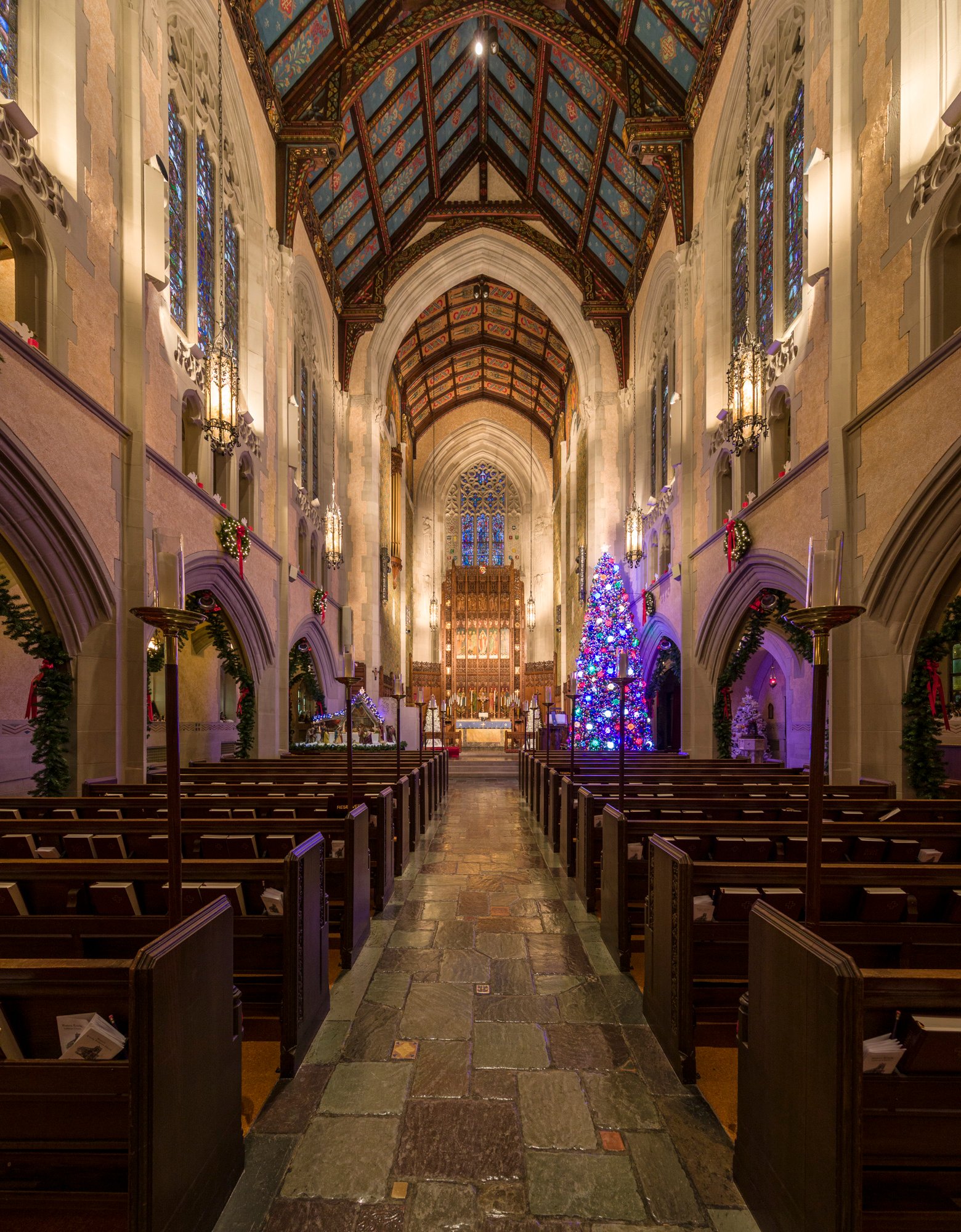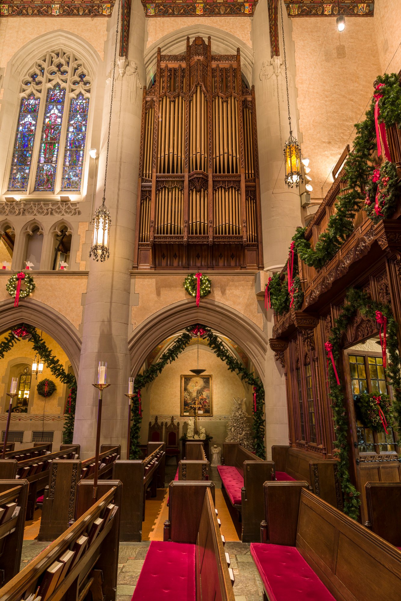 In the late 1920s, Trinity began considering renovation of its 1866 structure. However, congregant Charles Gauss stepped forward and offered to finance the building of a new church.[6] The old church was demolished, and the cornerstone of the current church was laid in 1929 with the dedication held on February 15, 1931.