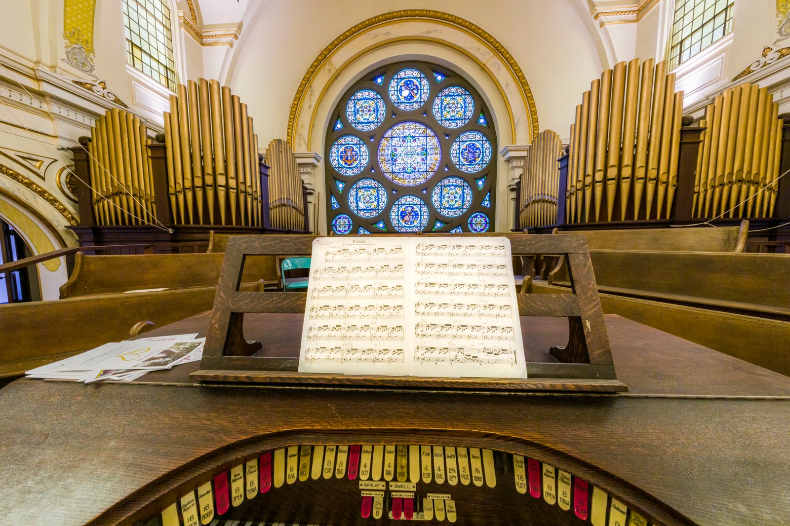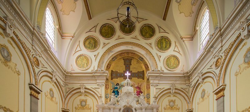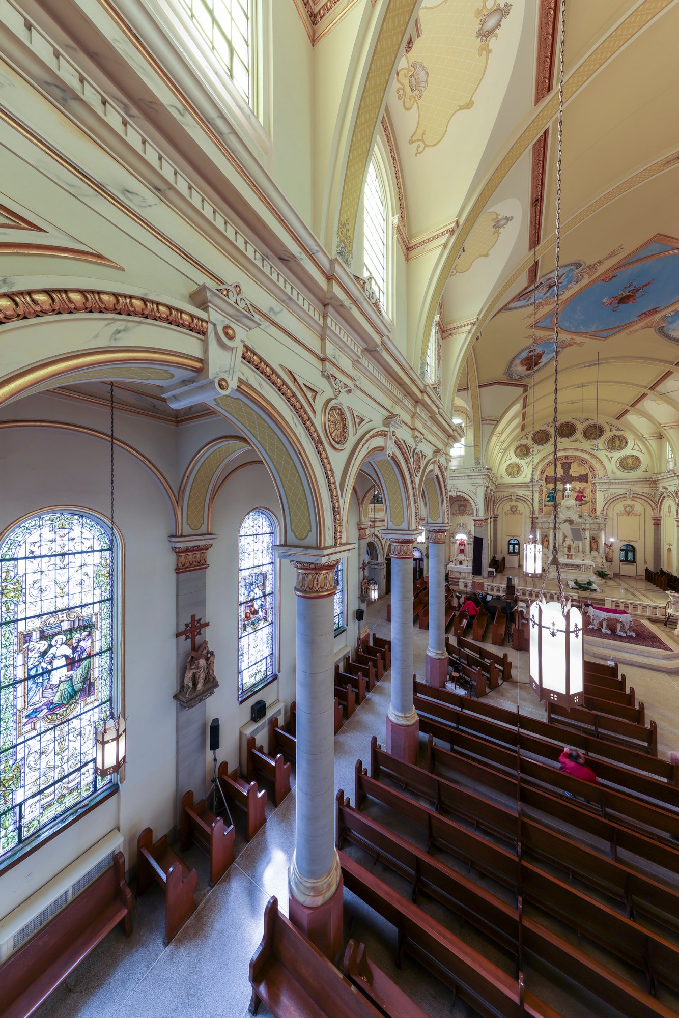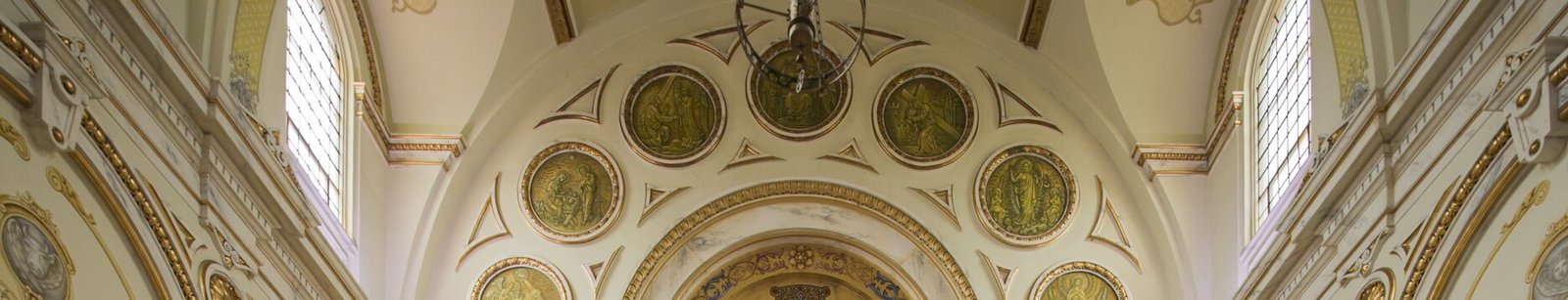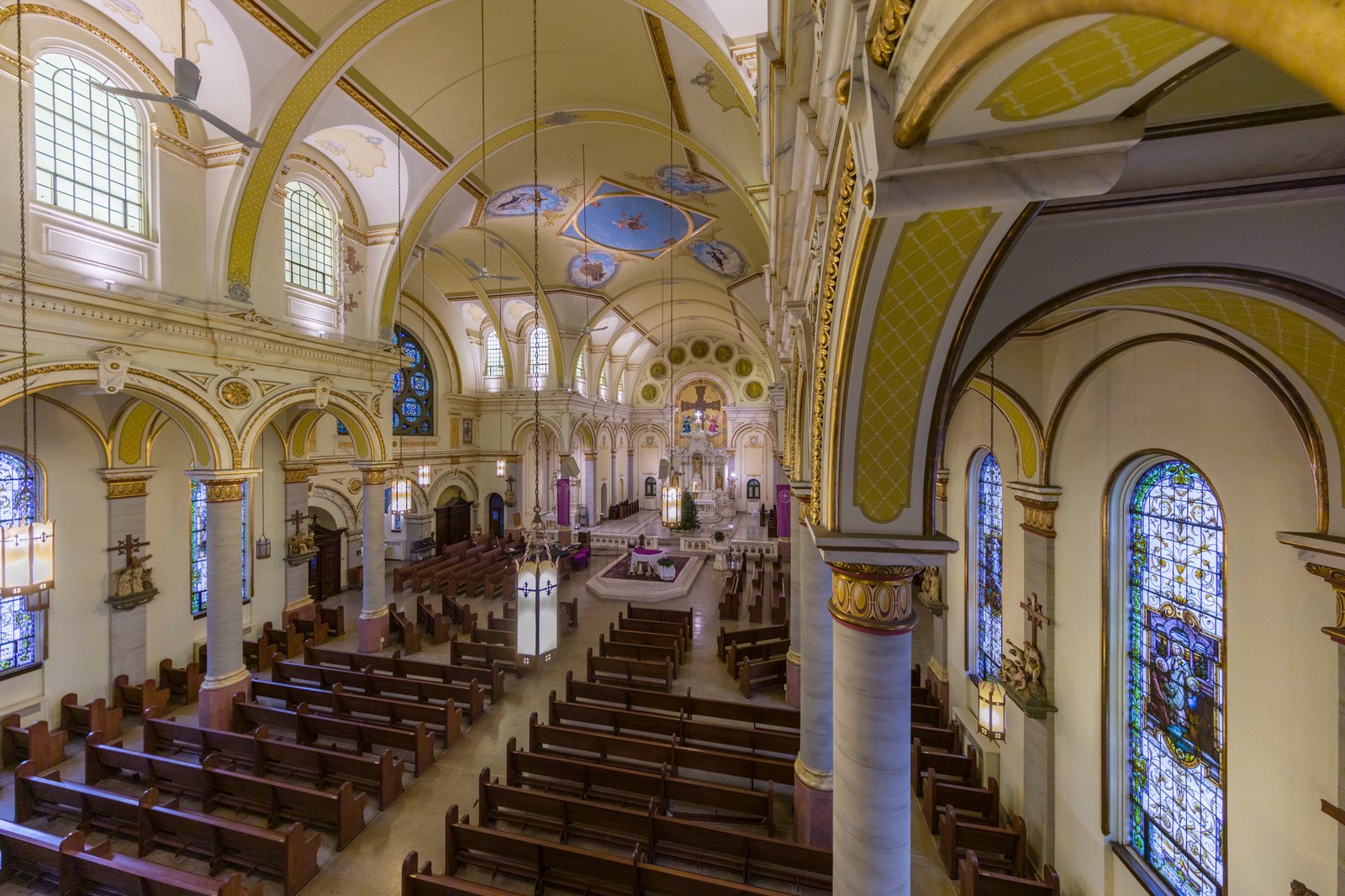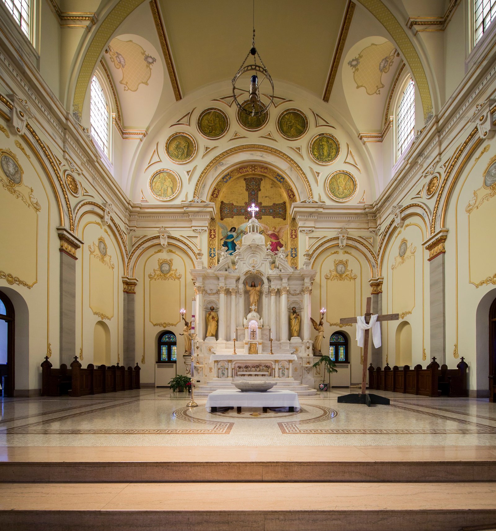 In the 1960's and 70's St. Charles, like many city parishes faced dwindling membership and struggled to survive. The school was closed and the building was eventually sold. In the 1980's St. Charles faced closure. This sad end was averted under the leadership of Father David Preuss, OFM, Capuchin. The small core of remaining parishioners banded together to implement roof repairs, boiler replacement, and began to rebuild their community. An ambitious project was undertaken to involve the parish in both neighborhood and church restoration. The church renovations included a total repainting of the interior in a style complimenting its design and adding several ceiling murals to represent the multi-ethnic community of the parish. Additional work in the church included lighting and electrical upgrades and maintaining the Wurlitzer pipe organ (one of only two of its type remaining in service). The parish was designated a Historic District on June 20, 1986 and was re-dedicated in November of 1995.