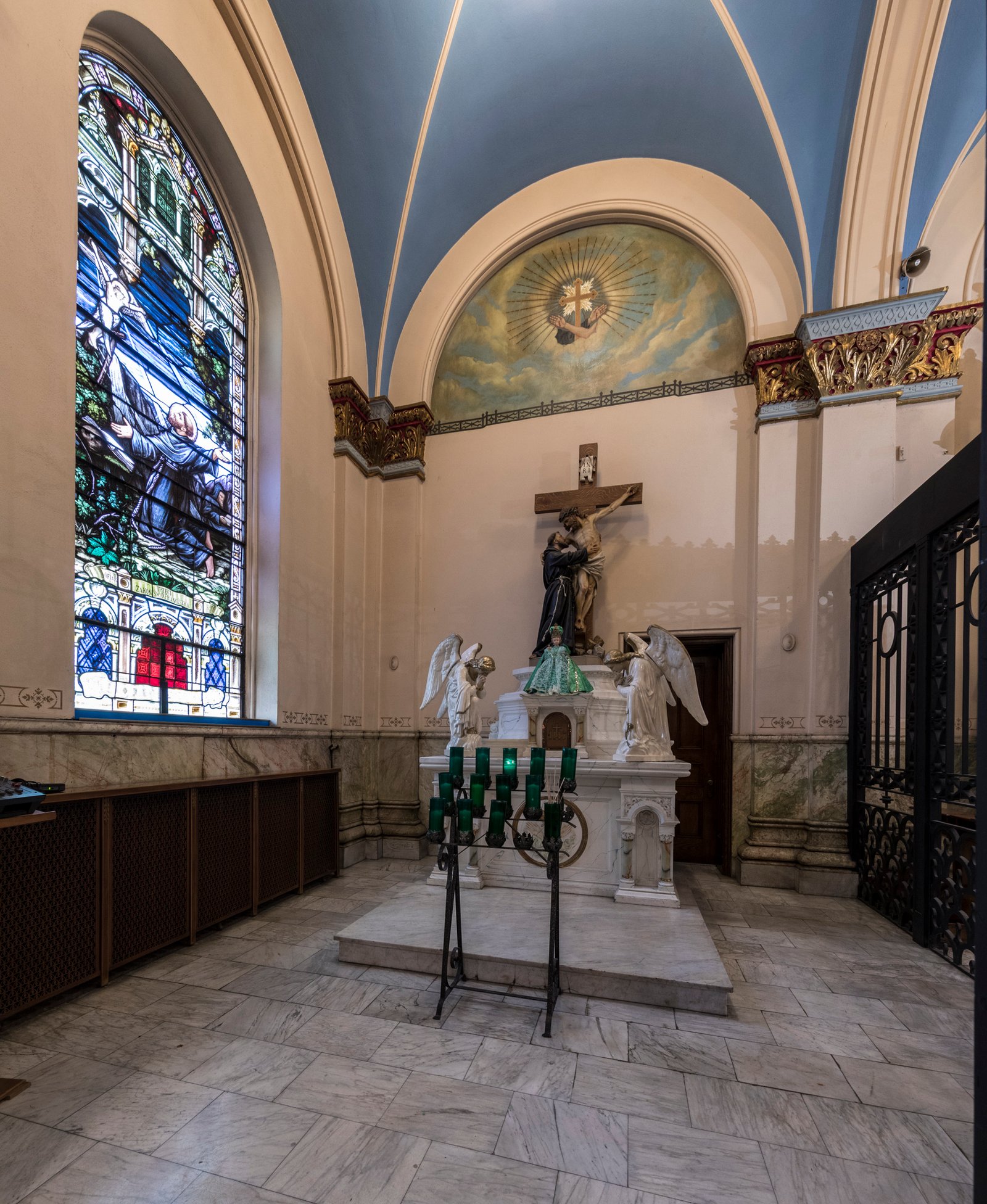 11 St. Hedwig's was the third Polish parish established on Detroit's west side. Bishop Foley appointed Father John Mueller pastor on July 3, 1902. St. Casmir's was the first Polish parish on the west side, founded in 1882—even before Sweetest Heart of Mary. And then St. Francis de Assisi was the second Polish parish on the west side established in 1889. As frequently happened in Detroit and elsewhere, Polish Catholics disagreed strongly with the bishop. St. Hedwig's Parish was dissolved in 1905 until a new group of priests more loyal to Detroit bishops—Polish Franciscans—were recruited to staff and manage St. Hedwig's Parish. Father Eustace Bartoszewicz was appointed pastor in 1912, and five years later, the magnificent church that you see was completed. Later, the parish established a large elementary school and then a high school that survived for 49 years until the out-migration of Poles and others from this neighborhood led to its closing. The elementary school closed five years later. Perhaps surprisingly, this neighborhood became a destination point for newly-arriving immigrants from Mexico. The priests of the parish, rather than offering Mass in Polish as they did a century ago, now serve the needs of their Spanish-speaking parishioners. Interestingly, the parish school is still an educational facility now managed by the city's public school system and offering instruction to Spanish-speaking students.