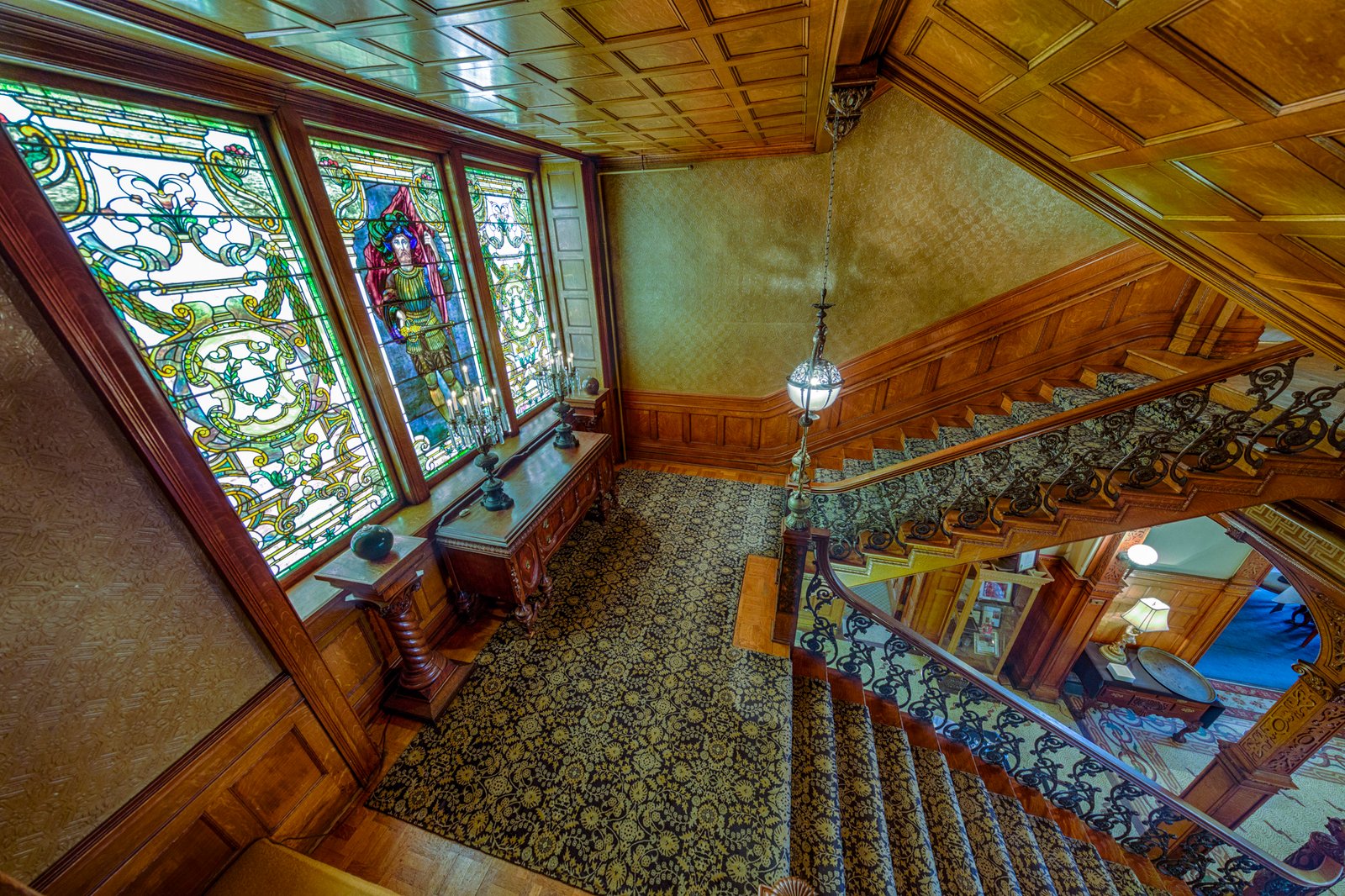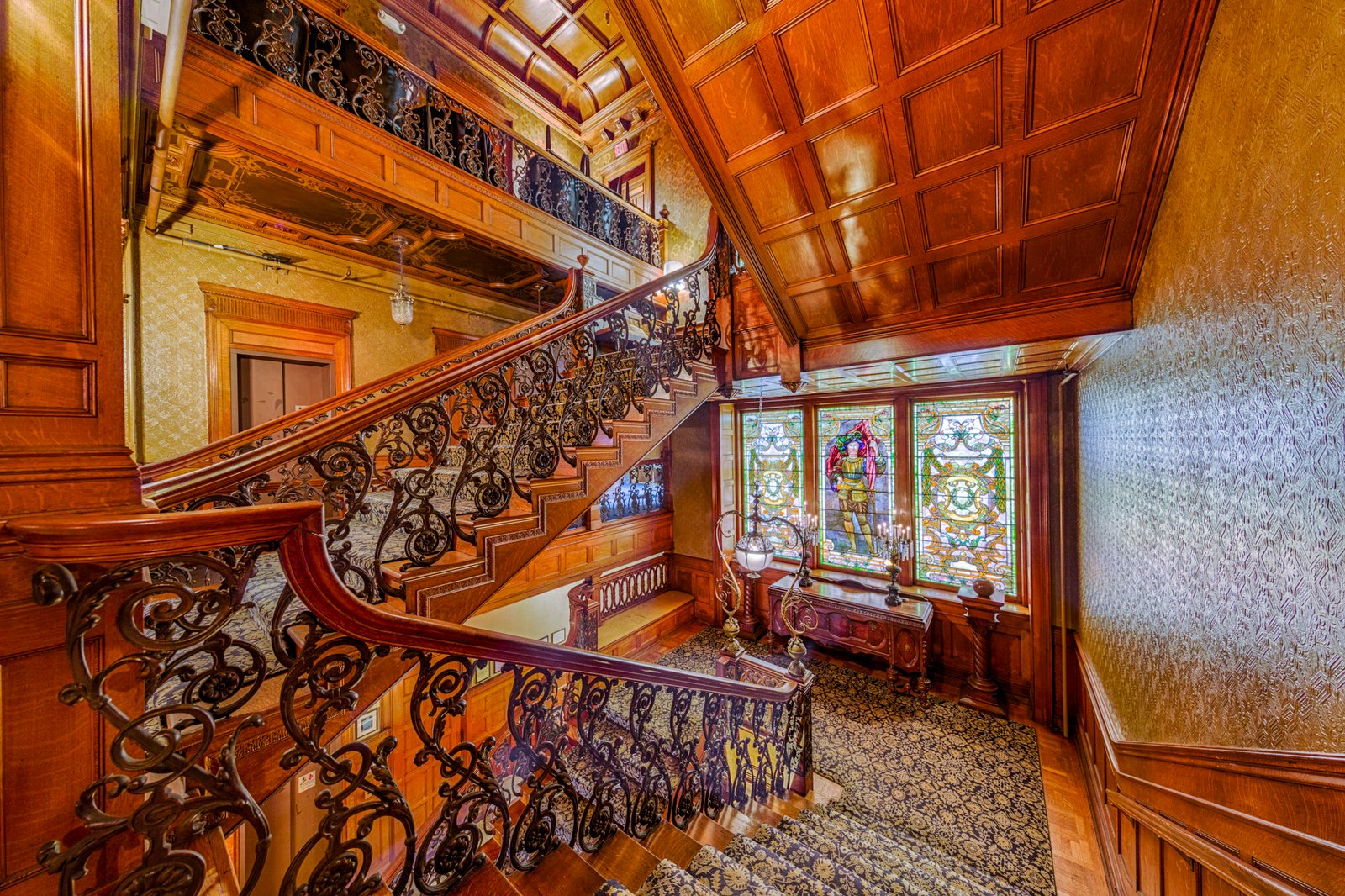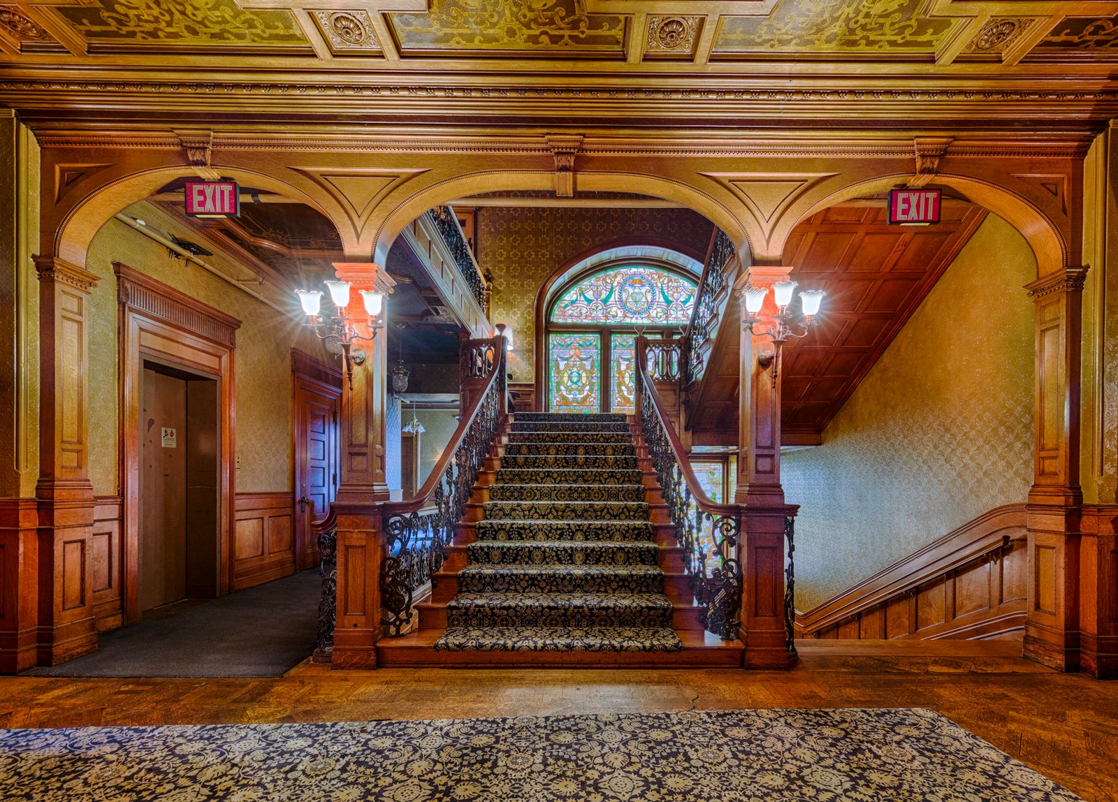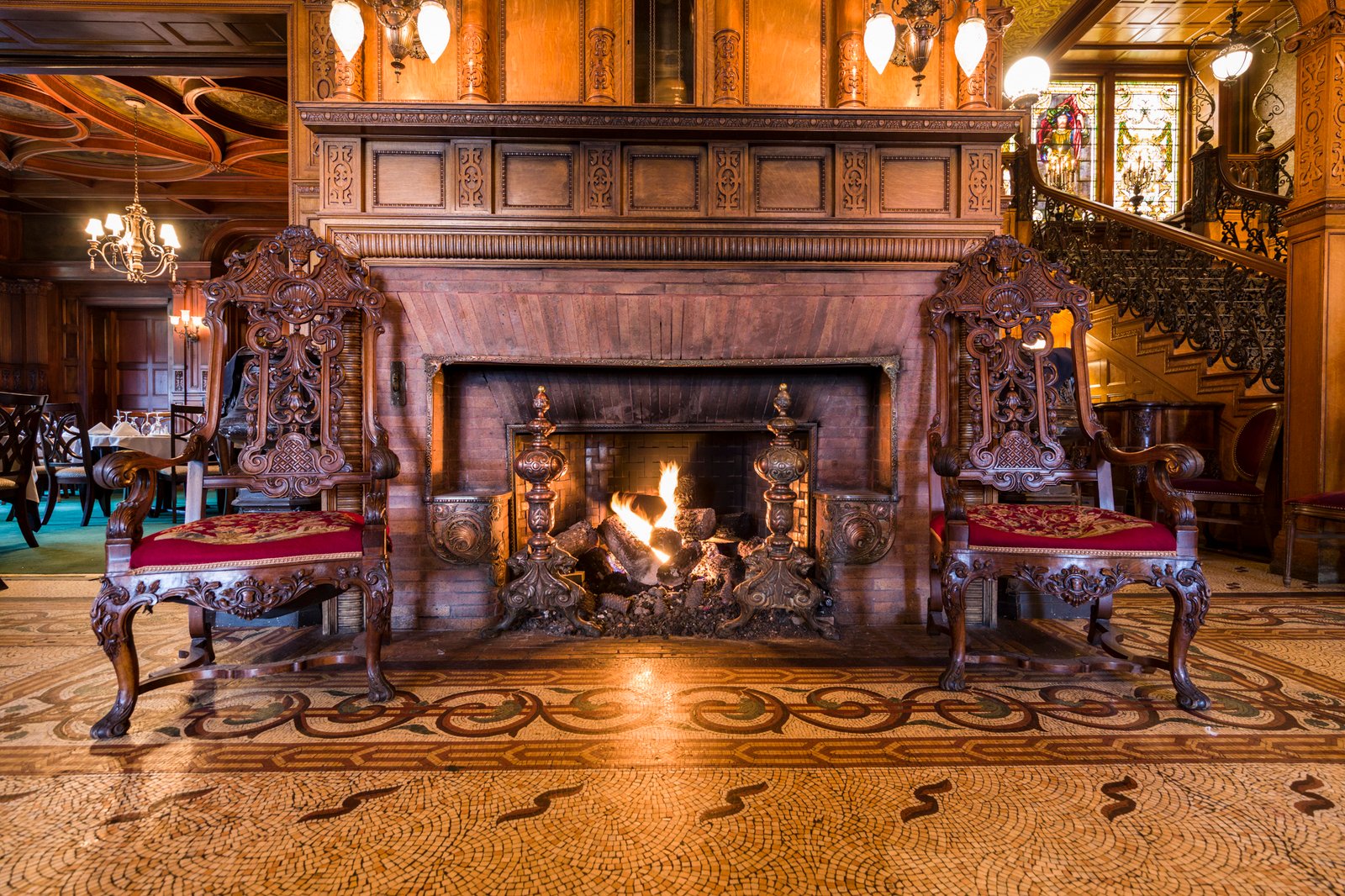 19 The David Whitney House was built between 1890 and 1894 by the famous lumber baron David Whitney Jr., who was considered not only one of Detroit's wealthiest personalities, but also one of Michigan's wealthiest citizens.[5] The house is estimated to cost $400,000 (approximately $10,500,000 in today's economy) and was featured in several newspapers of that time. The exterior is constructed using pink jasper from South Dakota. It is measured to be 21,000-square-foot (2,000 m2) and has 52 rooms (including 10 bathrooms), 218 windows, 20 fireplaces, and a secret vault in the dining room, an elevator, and numerous Tiffany glass windows. The Tiffany glass windows have been estimated to be worth more than the house itself. Architect : Gordon W. Lloyd.