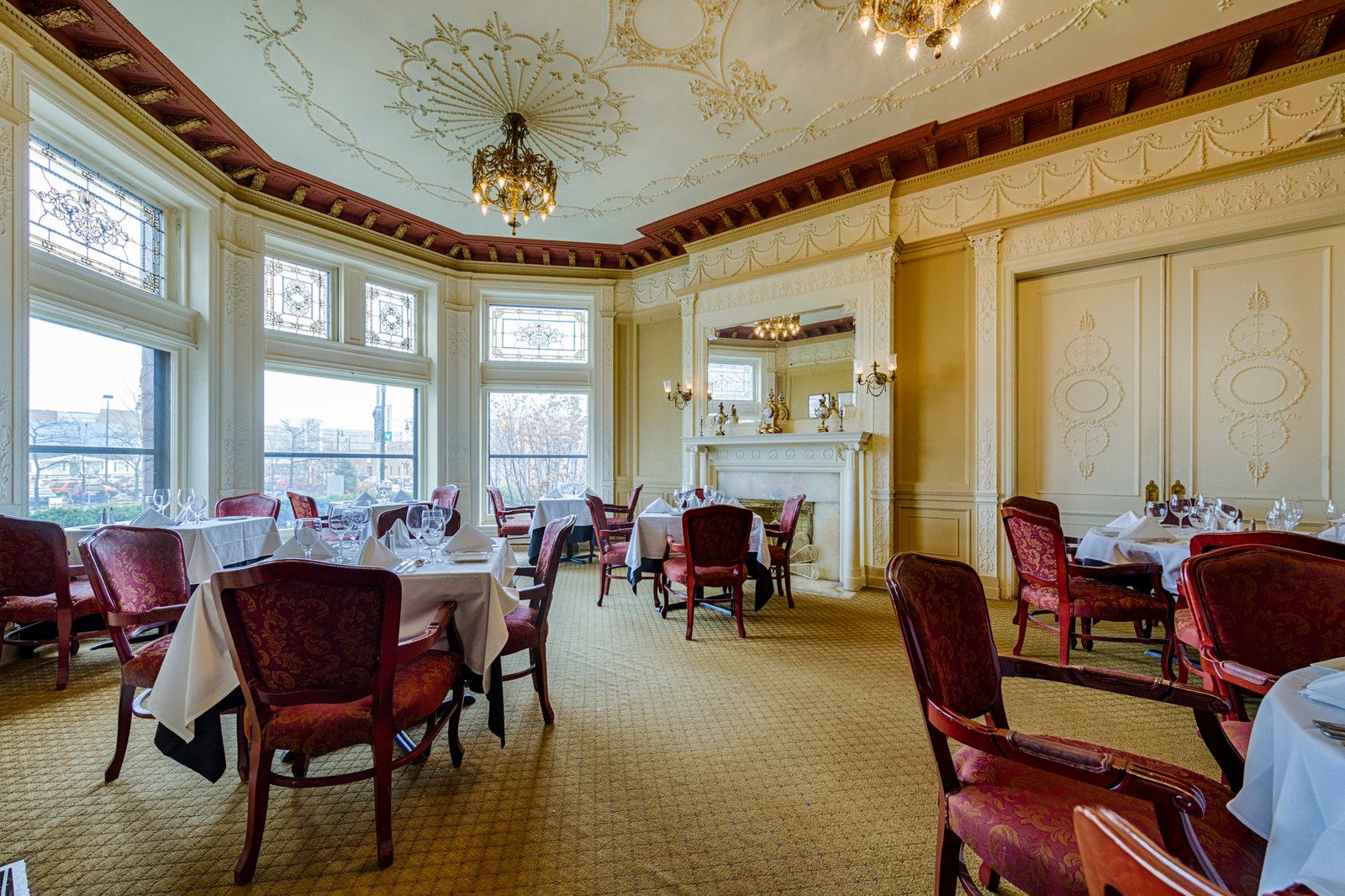 13 The David Whitney House was built between 1890 and 1894 by the famous lumber baron David Whitney Jr., who was considered not only one of Detroit's wealthiest personalities, but also one of Michigan's wealthiest citizens.[5] The house is estimated to cost $400,000 (approximately $10,500,000 in today's economy) and was featured in several newspapers of that time. The exterior is constructed using pink jasper from South Dakota. It is measured to be 21,000-square-foot (2,000 m2) and has 52 rooms (including 10 bathrooms), 218 windows, 20 fireplaces, and a secret vault in the dining room, an elevator, and numerous Tiffany glass windows. The Tiffany glass windows have been estimated to be worth more than the house itself. Architect : Gordon W. Lloyd.