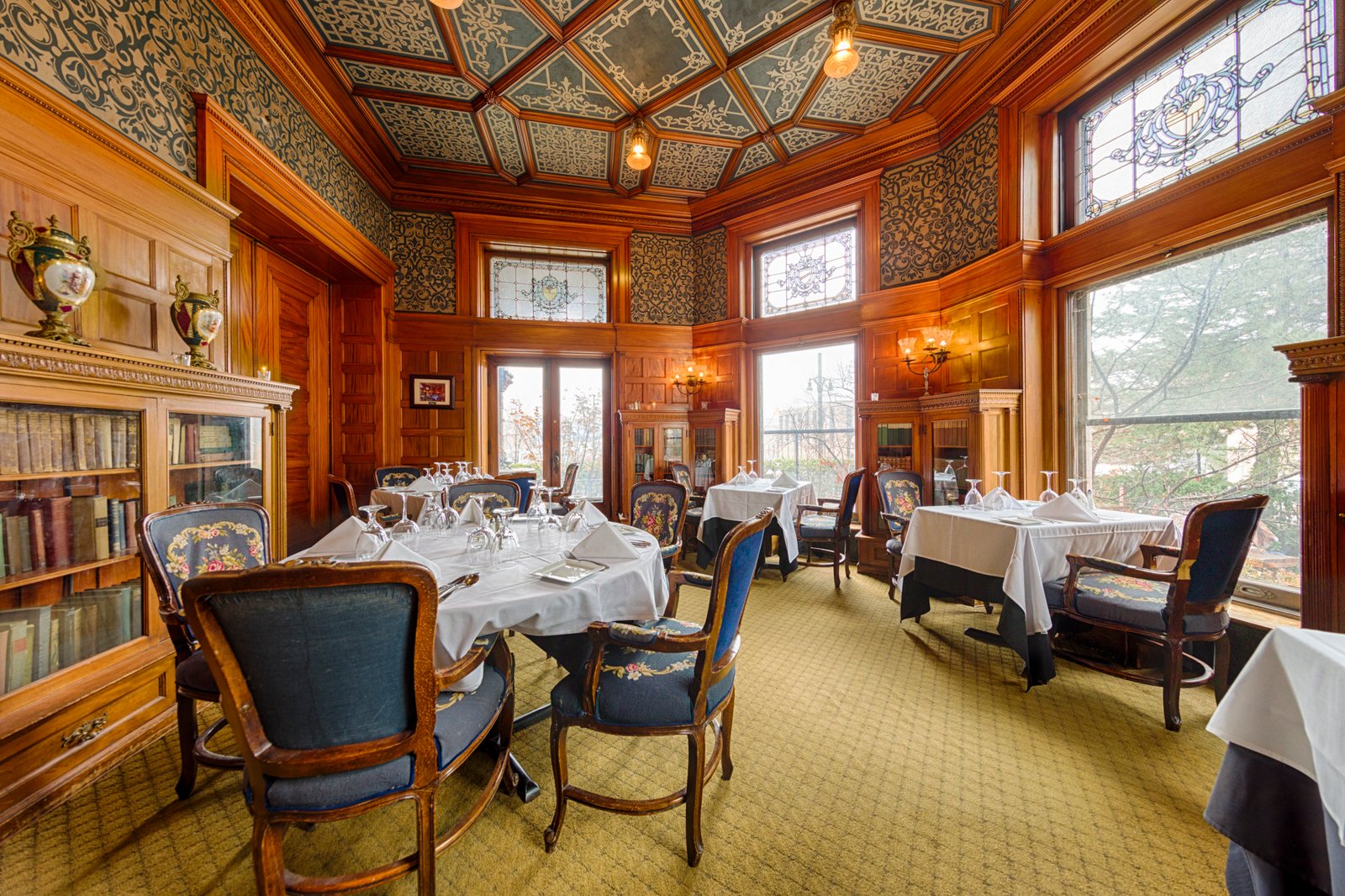 15 The David Whitney House was built between 1890 and 1894 by the famous lumber baron David Whitney Jr., who was considered not only one of Detroit's wealthiest personalities, but also one of Michigan's wealthiest citizens.[5] The house is estimated to cost $400,000 (approximately $10,500,000 in today's economy) and was featured in several newspapers of that time. The exterior is constructed using pink jasper from South Dakota. It is measured to be 21,000-square-foot (2,000 m2) and has 52 rooms (including 10 bathrooms), 218 windows, 20 fireplaces, and a secret vault in the dining room, an elevator, and numerous Tiffany glass windows. The Tiffany glass windows have been estimated to be worth more than the house itself. Architect : Gordon W. Lloyd.
