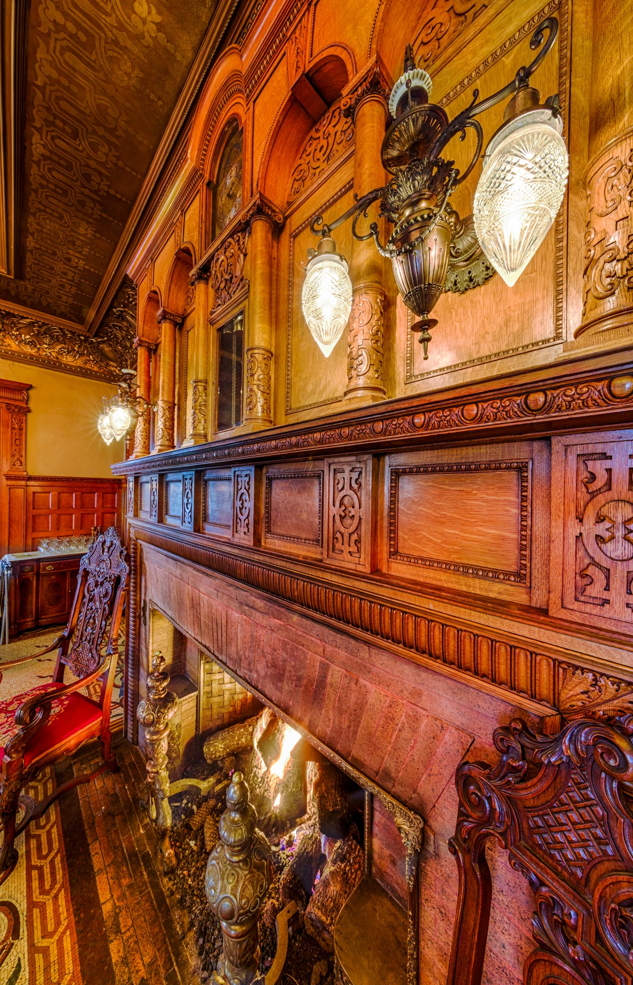 17 The David Whitney House was built between 1890 and 1894 by the famous lumber baron David Whitney Jr., who was considered not only one of Detroit's wealthiest personalities, but also one of Michigan's wealthiest citizens.[5] The house is estimated to cost $400,000 (approximately $10,500,000 in today's economy) and was featured in several newspapers of that time. The exterior is constructed using pink jasper from South Dakota. It is measured to be 21,000-square-foot (2,000 m2) and has 52 rooms (including 10 bathrooms), 218 windows, 20 fireplaces, and a secret vault in the dining room, an elevator, and numerous Tiffany glass windows. The Tiffany glass windows have been estimated to be worth more than the house itself. Architect : Gordon W. Lloyd.
