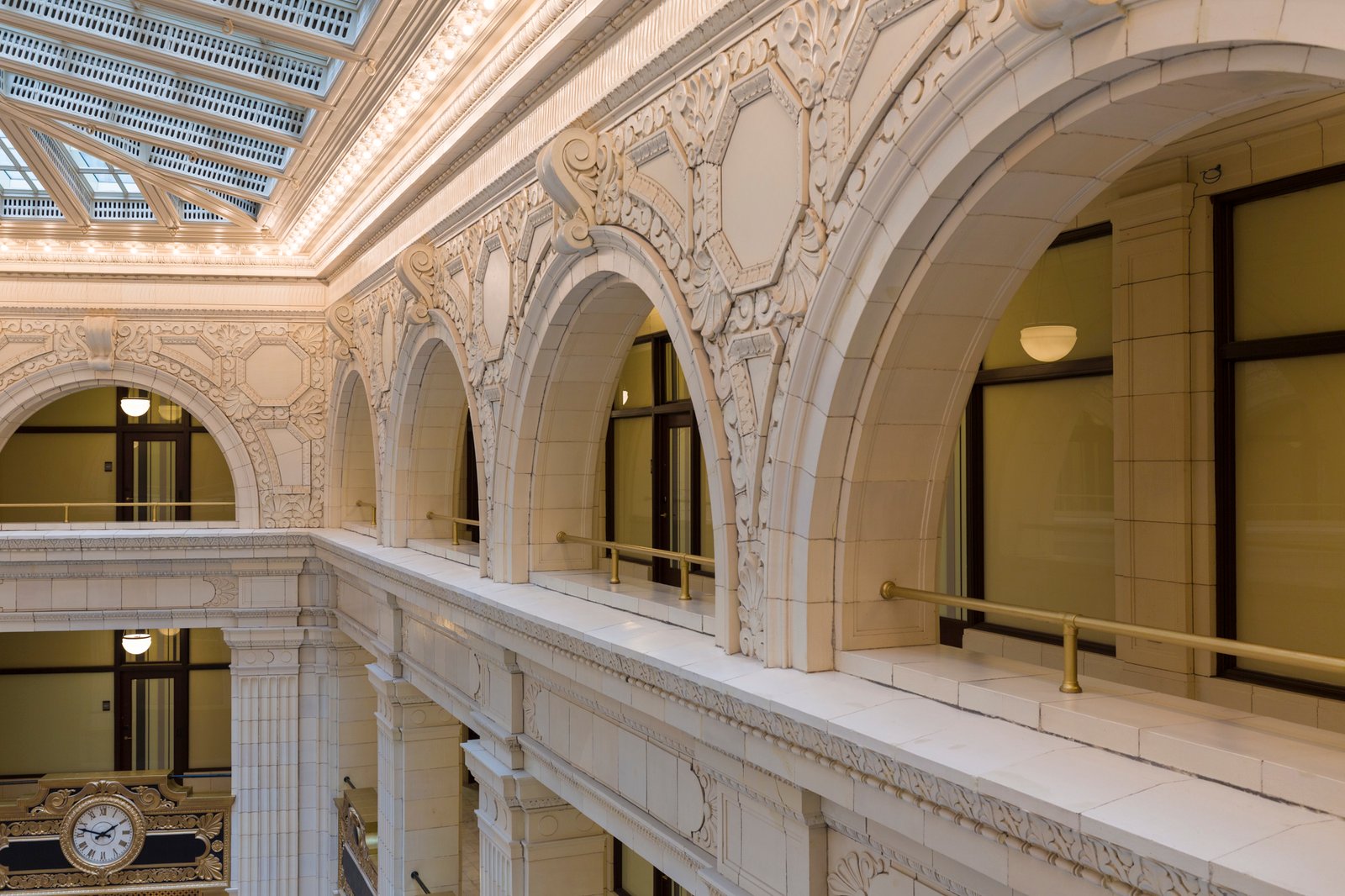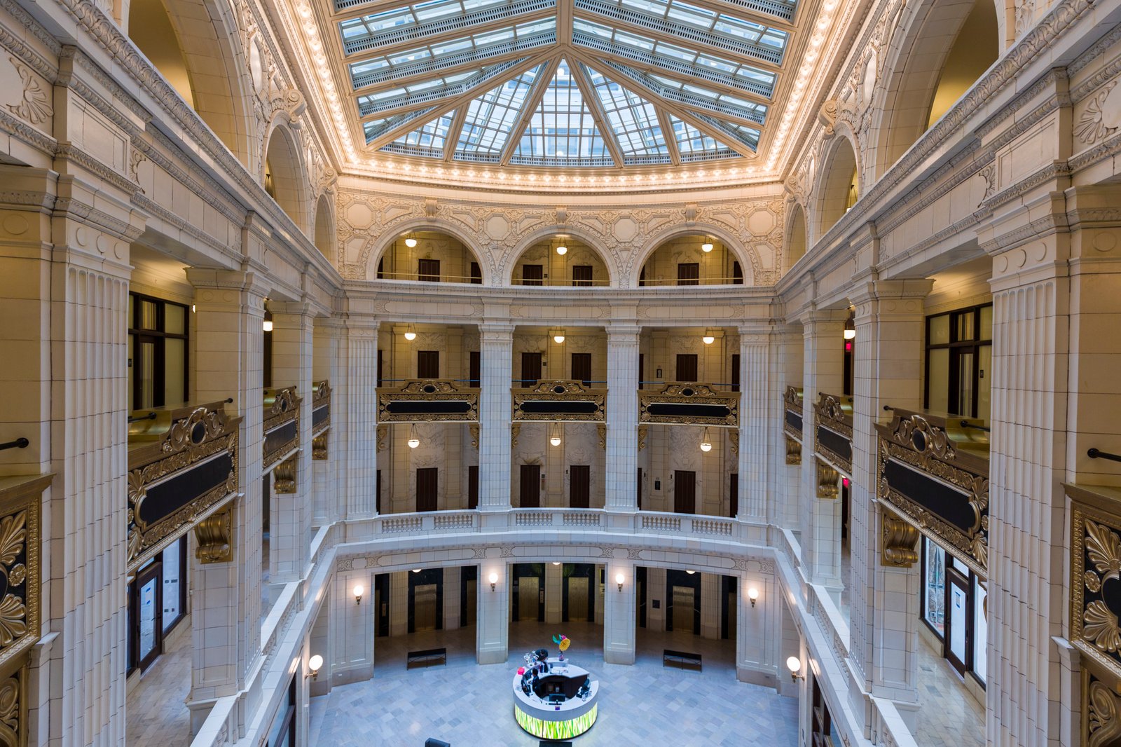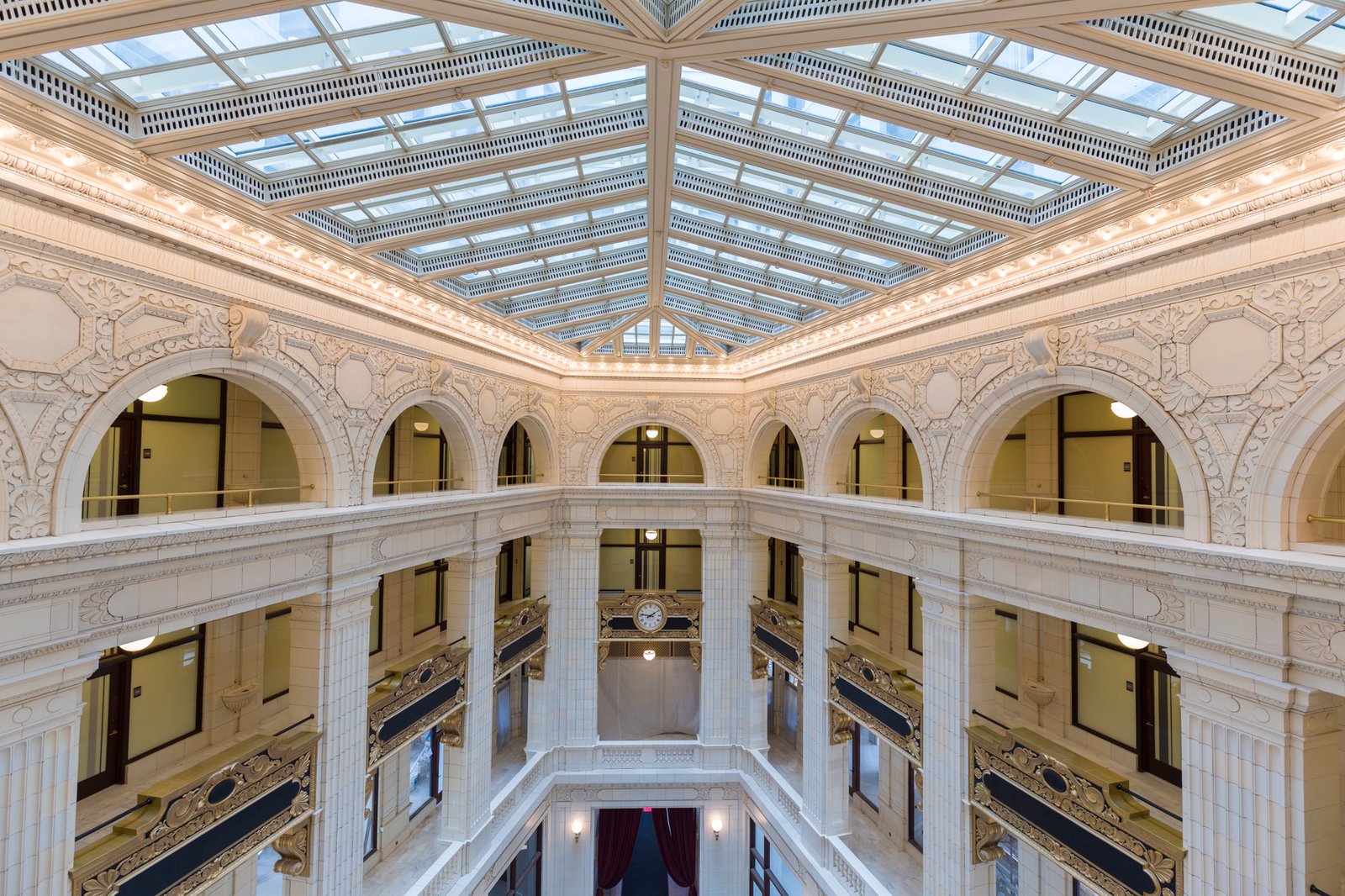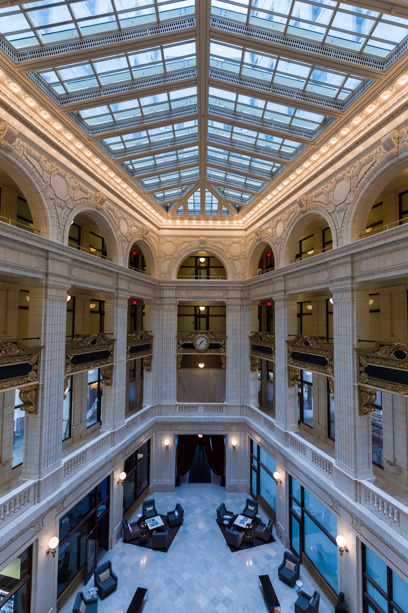 14 The David Whitney Building is a historic class-A skyscraper located at 1 Park Avenue (1550 Woodward Avenue from 1921 to 2014), on the northern edge of Downtown Detroit, Michigan, within the Grand Circus Park Historic District. The building stands on a wedge-shaped site at the junction of Park Avenue, Woodward Avenue, and Washington Boulevard. Construction on the 19-floor structure began in 1914