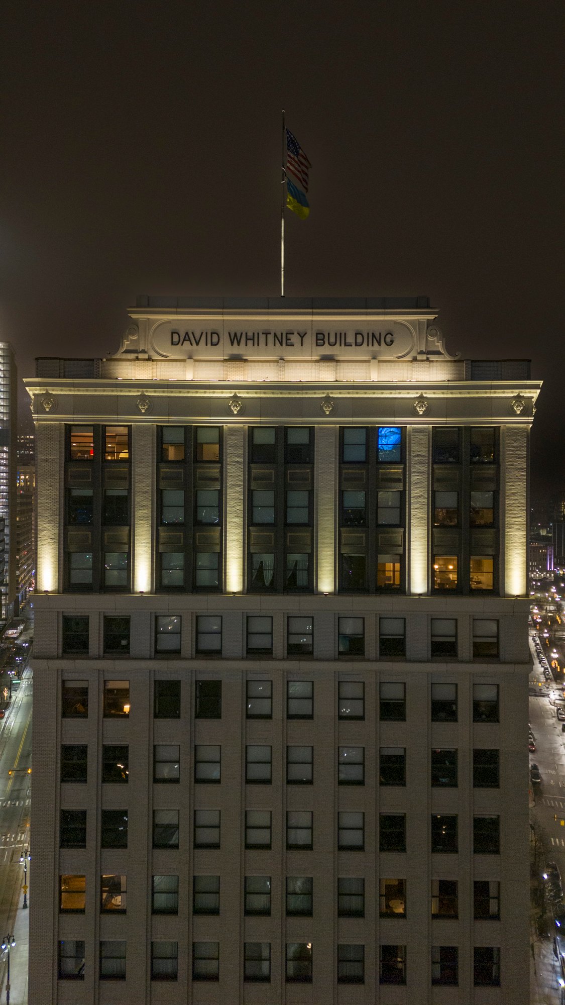 12 The David Whitney Building is a historic class-A skyscraper located at 1 Park Avenue (1550 Woodward Avenue from 1921 to 2014), on the northern edge of Downtown Detroit, Michigan, within the Grand Circus Park Historic District. The building stands on a wedge-shaped site at the junction of Park Avenue, Woodward Avenue, and Washington Boulevard. Construction on the 19-floor structure began in 1914.