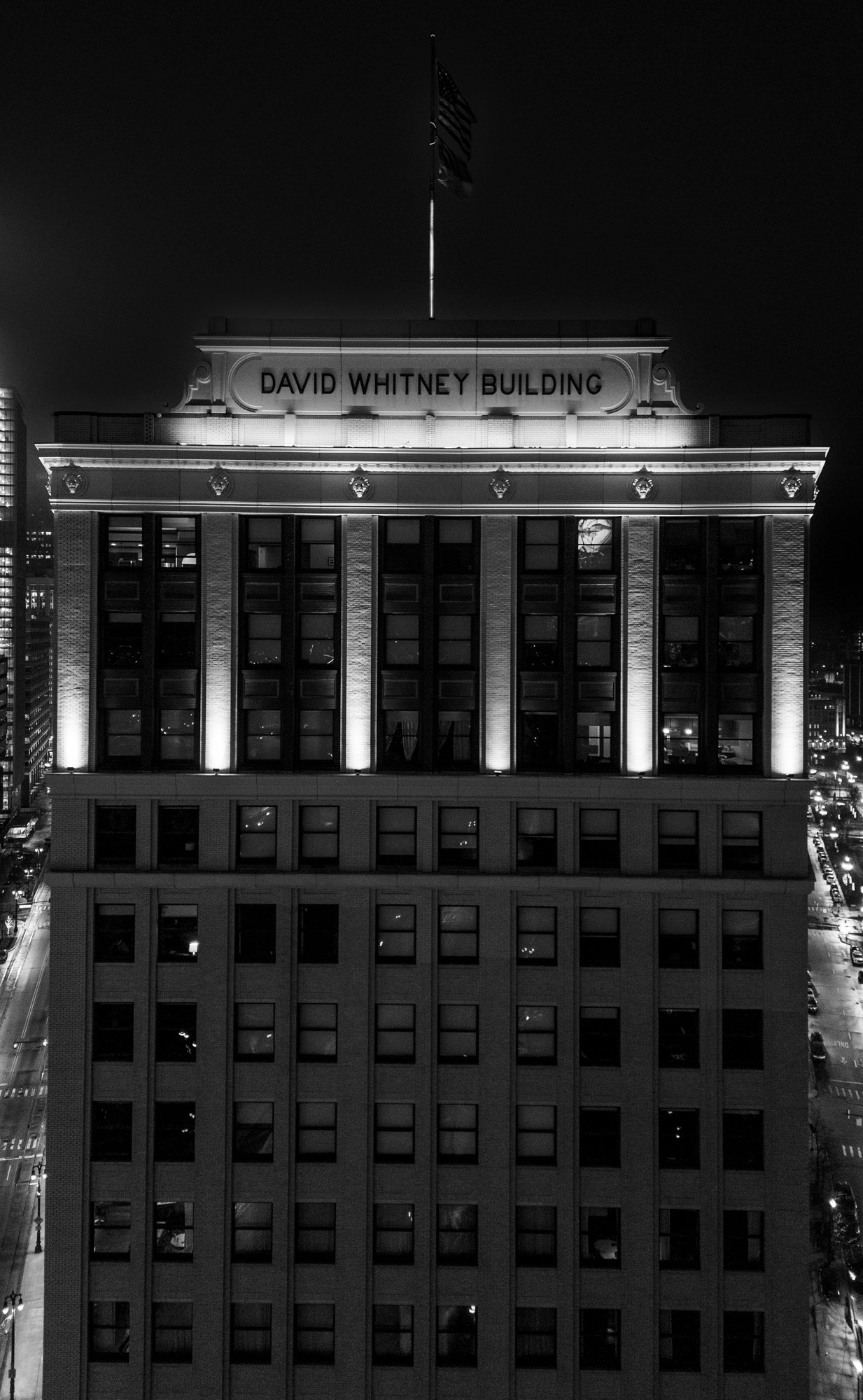 15 The David Whitney Building is a historic class-A skyscraper located at 1 Park Avenue (1550 Woodward Avenue from 1921 to 2014), on the northern edge of Downtown Detroit, Michigan, within the Grand Circus Park Historic District. The building stands on a wedge-shaped site at the junction of Park Avenue, Woodward Avenue, and Washington Boulevard. Construction on the 19-floor structure began in 1914