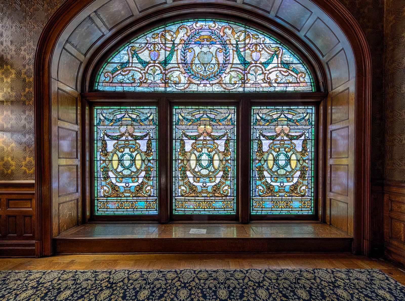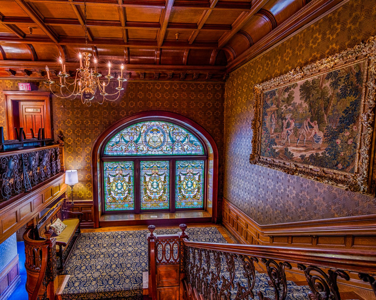 19 The David Whitney House was built between 1890 and 1894 by the famous lumber baron David Whitney Jr., who was considered not only one of Detroit's wealthiest personalities, but also one of Michigan's wealthiest citizens.[5] The house is estimated to cost $400,000 (approximately $10,500,000 in today's economy) and was featured in several newspapers of that time. The exterior is constructed using pink jasper from South Dakota. It is measured to be 21,000-square-foot (2,000 m2) and has 52 rooms (including 10 bathrooms), 218 windows, 20 fireplaces, and a secret vault in the dining room, an elevator, and numerous Tiffany glass windows. The Tiffany glass windows have been estimated to be worth more than the house itself. Architect : Gordon W. Lloyd.