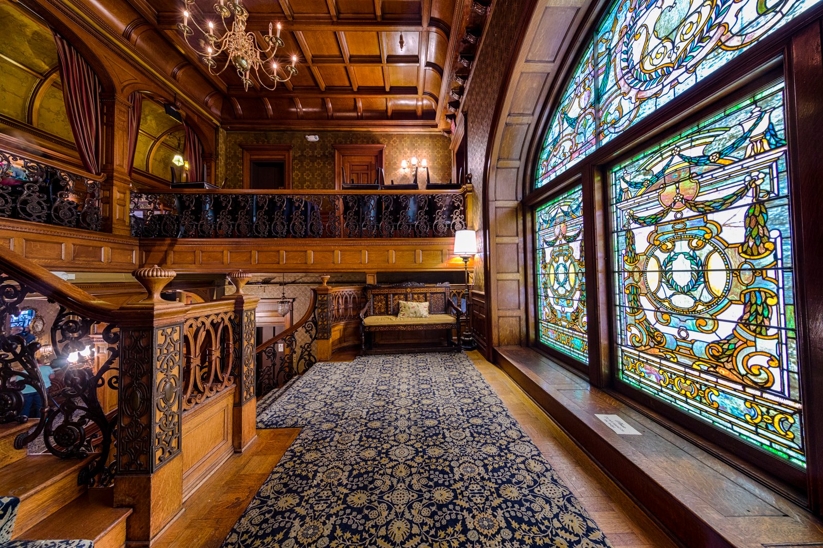 10 The David Whitney House was built between 1890 and 1894 by the famous lumber baron David Whitney Jr., who was considered not only one of Detroit's wealthiest personalities, but also one of Michigan's wealthiest citizens.[5] The house is estimated to cost $400,000 (approximately $10,500,000 in today's economy) and was featured in several newspapers of that time. The exterior is constructed using pink jasper from South Dakota. It is measured to be 21,000-square-foot (2,000 m2) and has 52 rooms (including 10 bathrooms), 218 windows, 20 fireplaces, and a secret vault in the dining room, an elevator, and numerous Tiffany glass windows. The Tiffany glass windows have been estimated to be worth more than the house itself. Architect : Gordon W. Lloyd.
