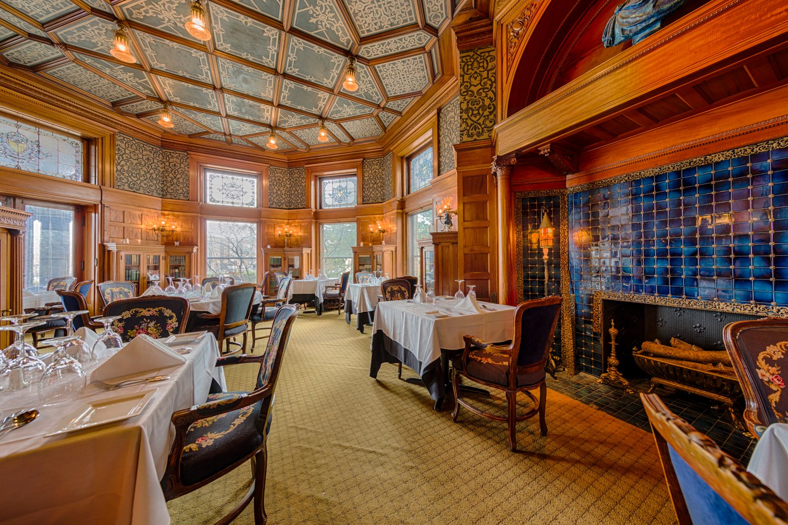 11 The David Whitney House was built between 1890 and 1894 by the famous lumber baron David Whitney Jr., who was considered not only one of Detroit's wealthiest personalities, but also one of Michigan's wealthiest citizens.[5] The house is estimated to cost $400,000 (approximately $10,500,000 in today's economy) and was featured in several newspapers of that time. The exterior is constructed using pink jasper from South Dakota. It is measured to be 21,000-square-foot (2,000 m2) and has 52 rooms (including 10 bathrooms), 218 windows, 20 fireplaces, and a secret vault in the dining room, an elevator, and numerous Tiffany glass windows. The Tiffany glass windows have been estimated to be worth more than the house itself. Architect : Gordon W. Lloyd.