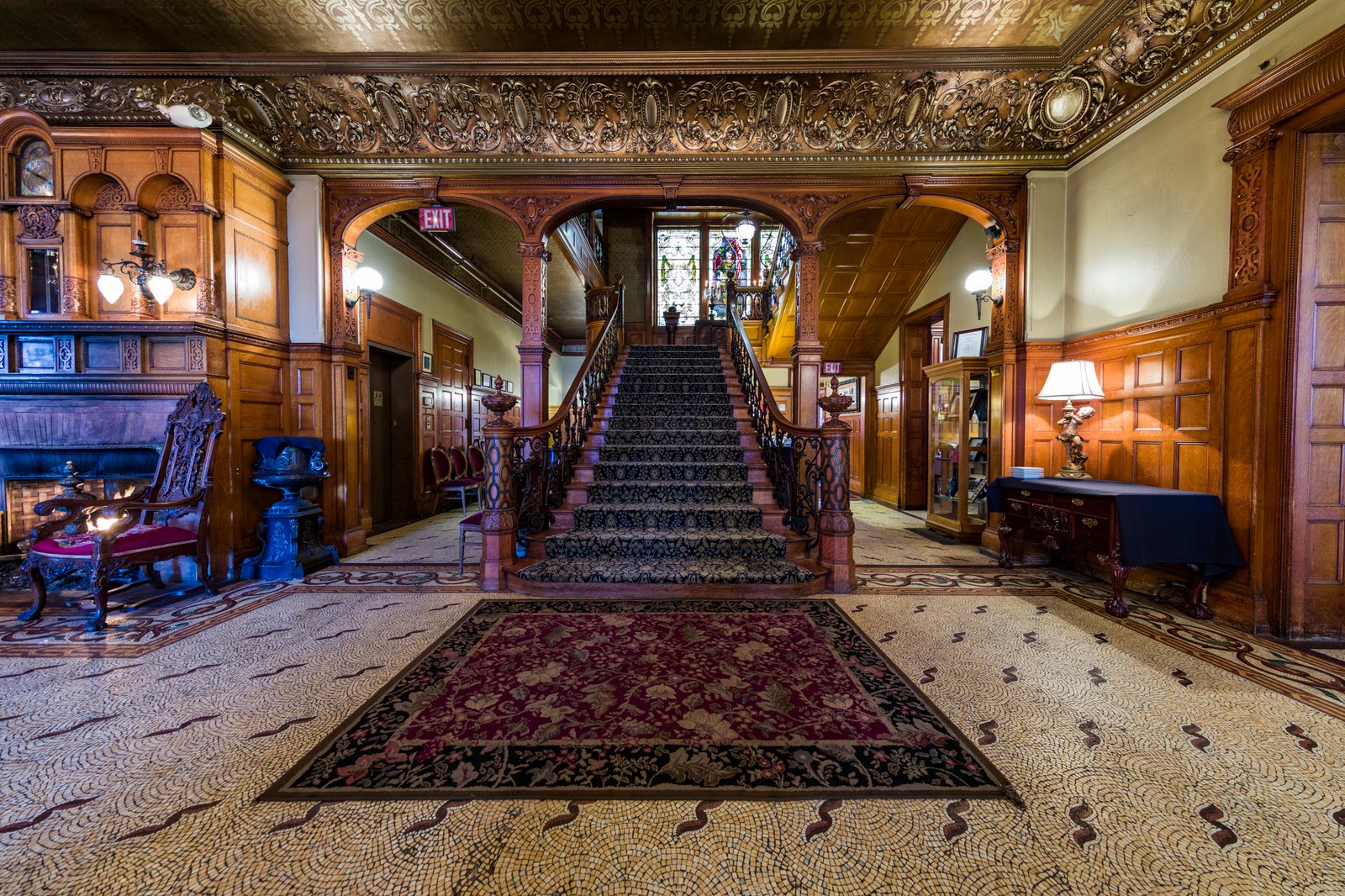 17 The David Whitney House was built between 1890 and 1894 by the famous lumber baron David Whitney Jr., who was considered not only one of Detroit's wealthiest personalities, but also one of Michigan's wealthiest citizens.[5] The house is estimated to cost $400,000 (approximately $10,500,000 in today's economy) and was featured in several newspapers of that time. The exterior is constructed using pink jasper from South Dakota. It is measured to be 21,000-square-foot (2,000 m2) and has 52 rooms (including 10 bathrooms), 218 windows, 20 fireplaces, and a secret vault in the dining room, an elevator, and numerous Tiffany glass windows. The Tiffany glass windows have been estimated to be worth more than the house itself. Architect : Gordon W. Lloyd.