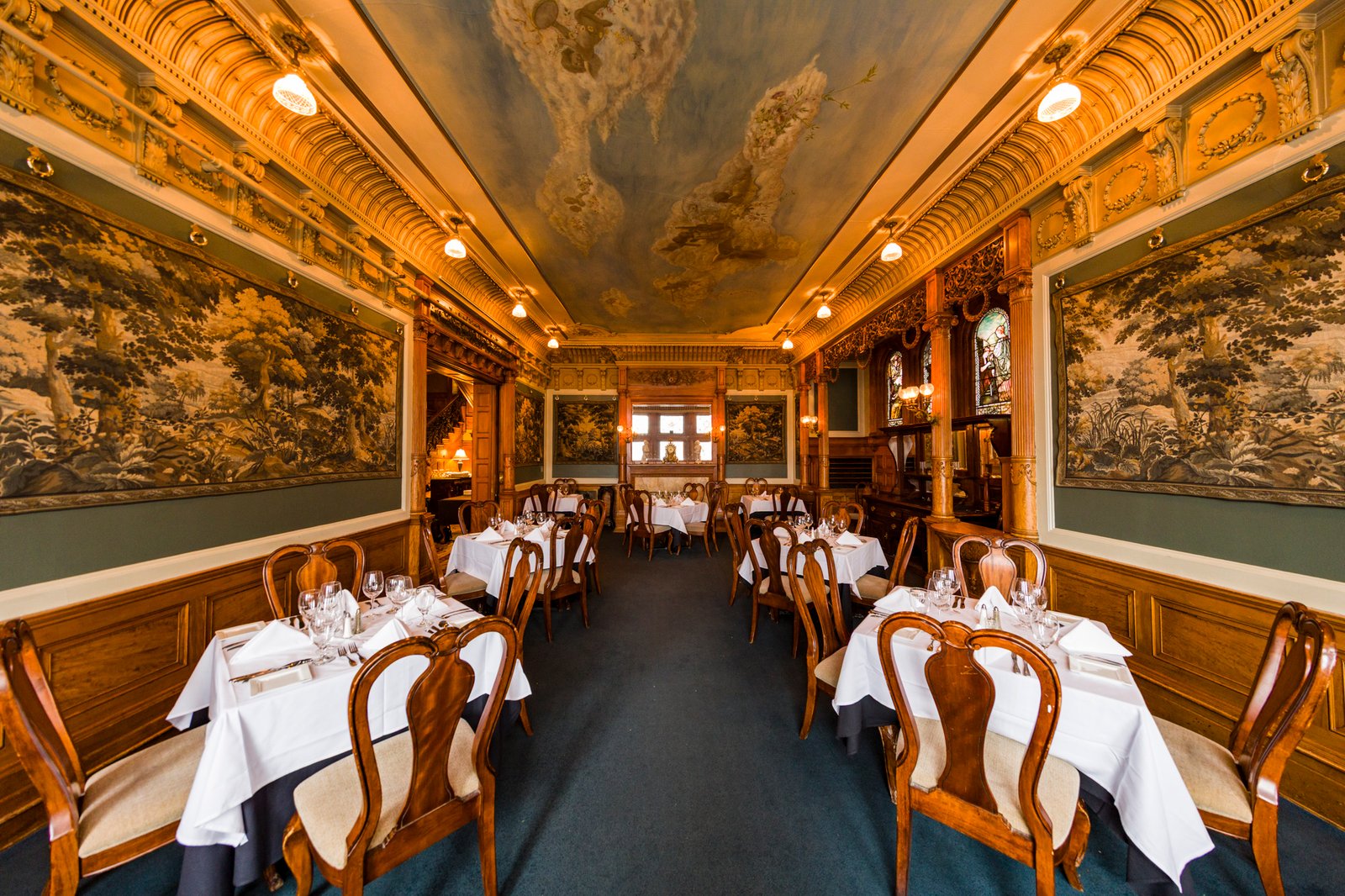 13 The David Whitney House was built between 1890 and 1894 by the famous lumber baron David Whitney Jr., who was considered not only one of Detroit's wealthiest personalities, but also one of Michigan's wealthiest citizens.[5] The house is estimated to cost $400,000 (approximately $10,500,000 in today's economy) and was featured in several newspapers of that time. The exterior is constructed using pink jasper from South Dakota. It is measured to be 21,000-square-foot (2,000 m2) and has 52 rooms (including 10 bathrooms), 218 windows, 20 fireplaces, and a secret vault in the dining room, an elevator, and numerous Tiffany glass windows. The Tiffany glass windows have been estimated to be worth more than the house itself. Architect : Gordon W. Lloyd.