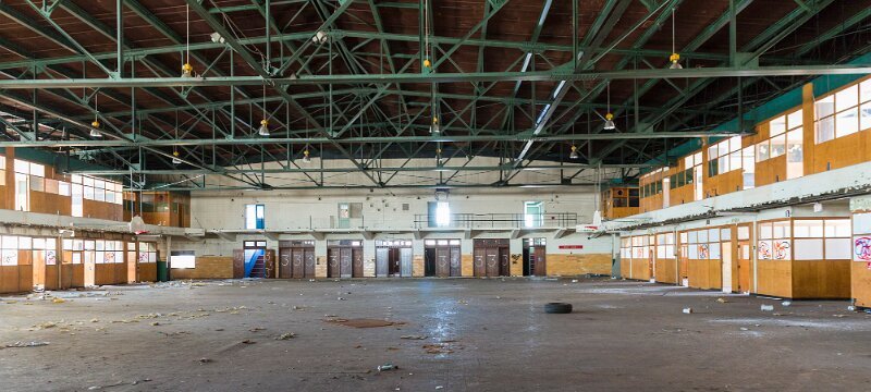 5 The Detroit Naval Armory is a limestone structure with four main sections: a vestibule, a drill hall, an office / penthouse section, and a company drill hall. The building mixes Art Moderne and Art Deco influences, and contains a large array of Depression-era WPA art by artists such as John Tabaczuk, Edgar Yaeger, David Fredenthal, and Gustave Hildebrand, all with nautical themes. The building faces East Jefferson; the entrance is heavily decorated in military and naval themes using Pewabic tiles. In front of the building is a semi-circular drive encircling a flagpole erected in 1943 and a large Navy anchor from the USS Yantic, a Civil War gunboat whose hull is buried in a filled-in boat slip in Gabriel Richard Park.