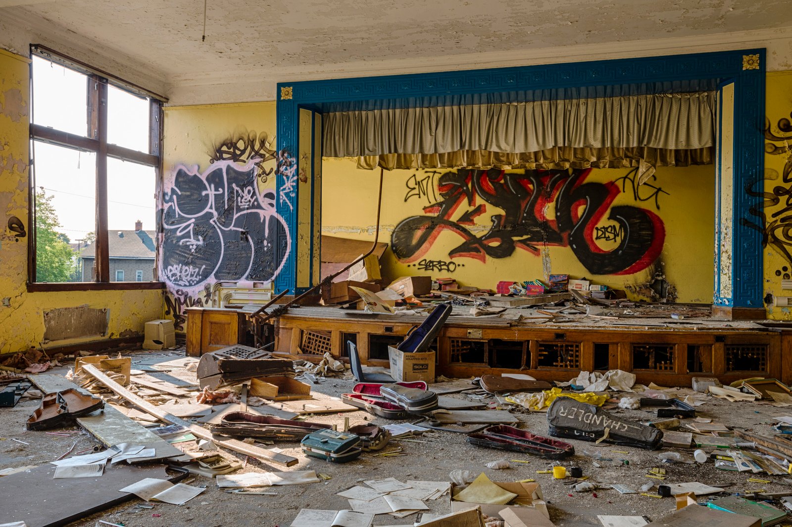 7 Chandler Elementary School was a school on the east side of Detroit, named for former mayor Zachariah Chandler. It was built in 1905, and like many other schools in the area was almost immediately overcrowded. From 1913 to 1914, the number of students grew from 1,600 to 2,362. While the number dropped the next year as more schools were opened nearby, admission continued to increase, and an additional wing was built in 1922. Another was built in 1961, but by then the population of the city had peaked, and enrollment was on its way down.