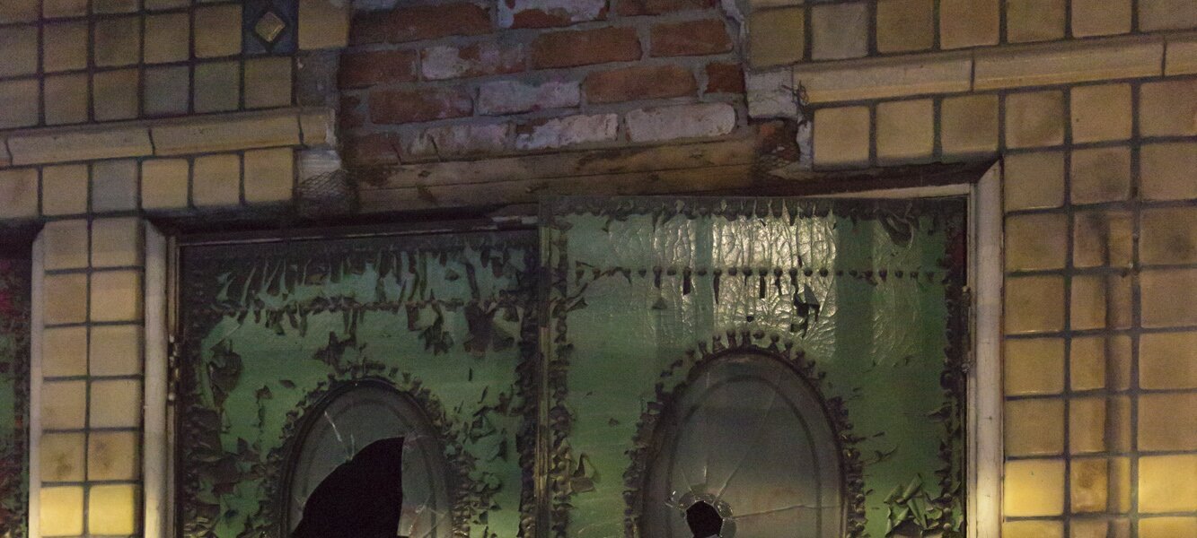 The front facade of the National is dominated by an enormous arch flanked with twin towers and covered with white and blue terra cotta tiles. The facade has hundreds of lightbulbs built in, which accentuate the architectural features when lit. The National Theater is an outstanding example of Modernistic design, boasting a pair of terra cotta latticework towers, arched art glass windows, and colored Pewabic tiles on the facade.