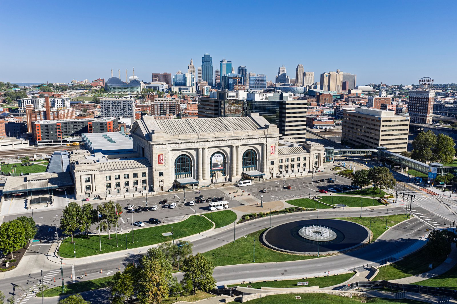 3 Union Station in Kansas City, Missouri, opened in 1914 as a grand symbol of the city’s growth and the golden age of rail travel. Designed by architect Jarvis Hunt in the Beaux-Arts style, the massive 850,000-square-foot building features monumental stone façades, soaring arched windows, and a 95-foot-high Grand Hall with ornate plasterwork and chandeliers. Built to replace the city’s older depot, it incorporated innovative design for efficient passenger flow, with separate levels for arrivals and departures and amenities such as restaurants, shops, and a post office. After years of decline following the reduction of passenger rail service, Union Station was restored in the late 1990s and reopened in 1999 as a thriving cultural and civic landmark, blending historic grandeur with modern attractions.