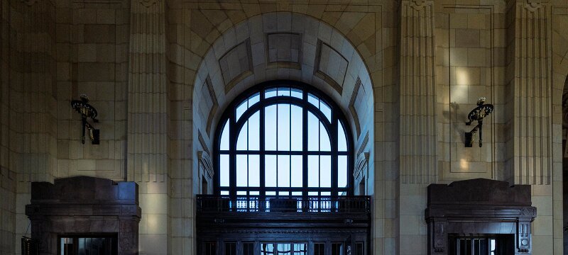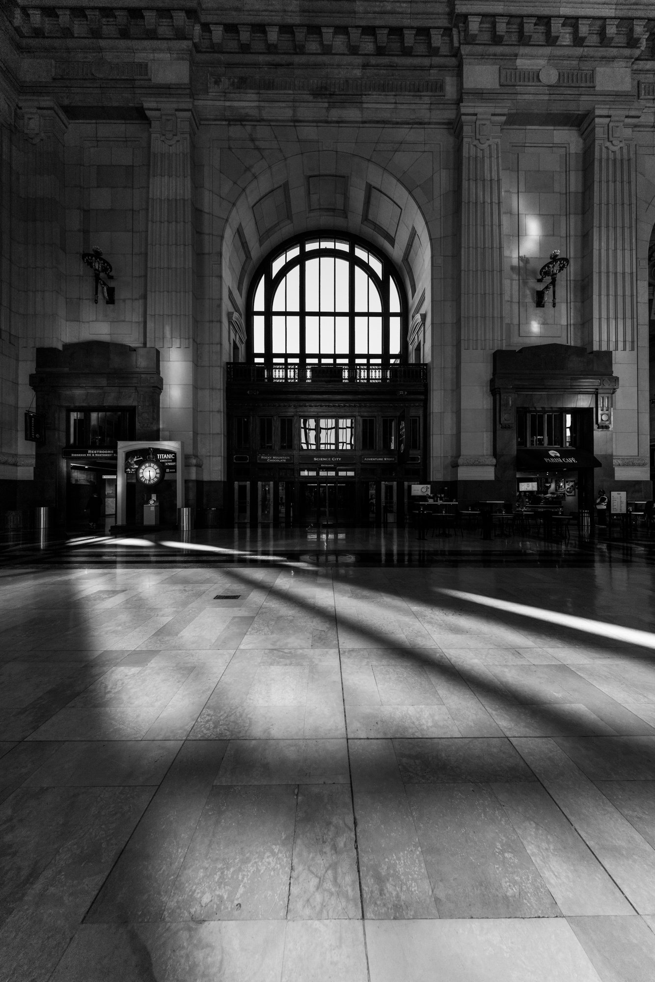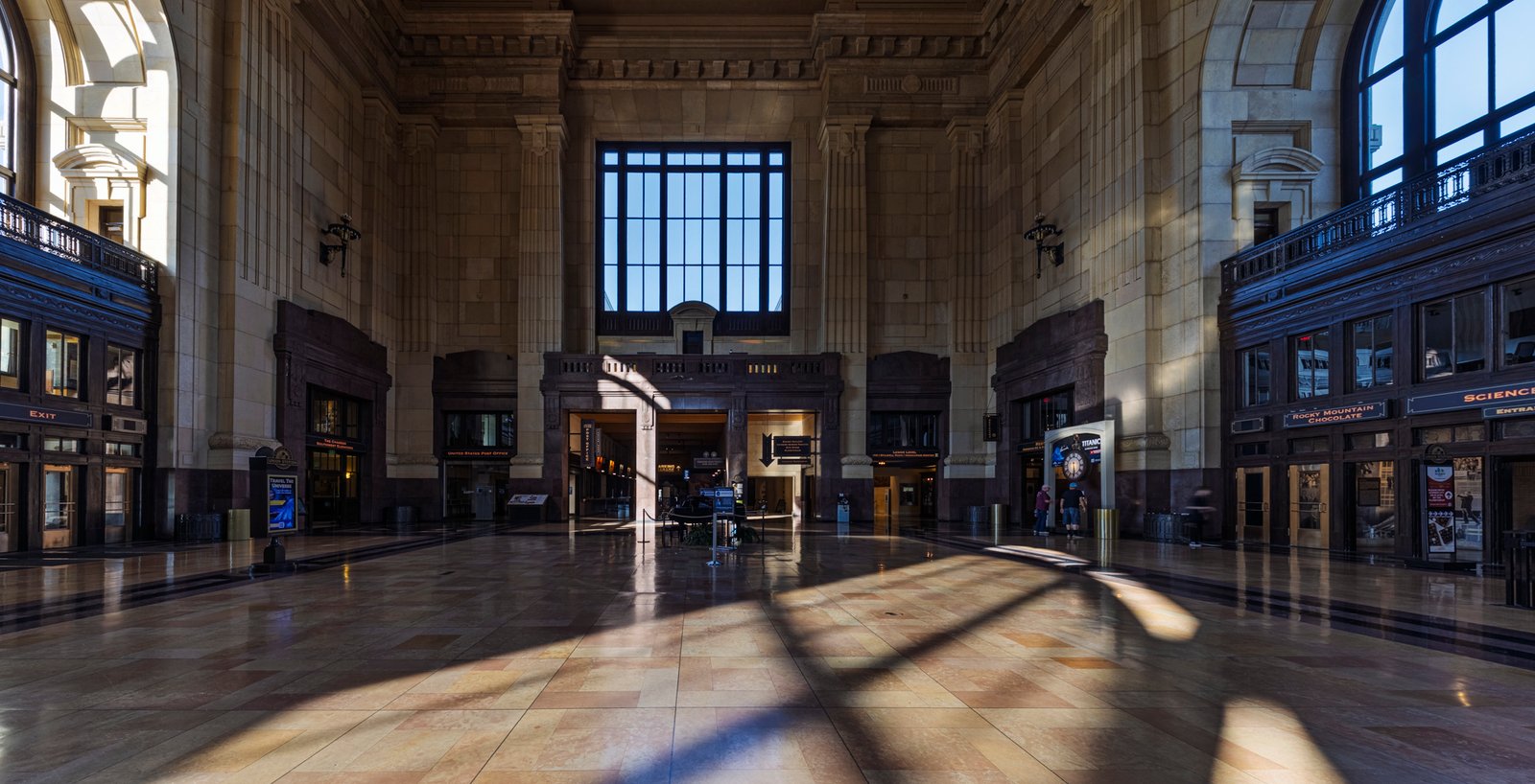 1 Union Station in Kansas City, Missouri, opened in 1914 as a grand symbol of the city’s growth and the golden age of rail travel. Designed by architect Jarvis Hunt in the Beaux-Arts style, the massive 850,000-square-foot building features monumental stone façades, soaring arched windows, and a 95-foot-high Grand Hall with ornate plasterwork and chandeliers. Built to replace the city’s older depot, it incorporated innovative design for efficient passenger flow, with separate levels for arrivals and departures and amenities such as restaurants, shops, and a post office. After years of decline following the reduction of passenger rail service, Union Station was restored in the late 1990s and reopened in 1999 as a thriving cultural and civic landmark, blending historic grandeur with modern attractions.