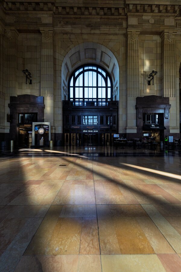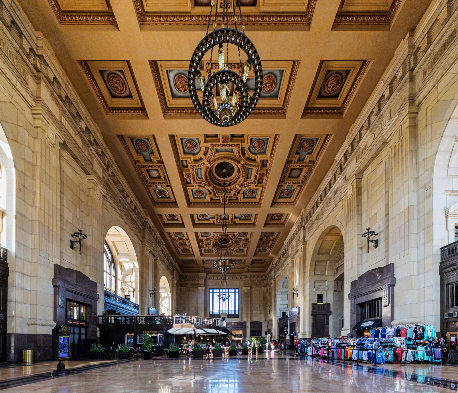 2 Union Station in Kansas City, Missouri, opened in 1914 as a grand symbol of the city’s growth and the golden age of rail travel. Designed by architect Jarvis Hunt in the Beaux-Arts style, the massive 850,000-square-foot building features monumental stone façades, soaring arched windows, and a 95-foot-high Grand Hall with ornate plasterwork and chandeliers. Built to replace the city’s older depot, it incorporated innovative design for efficient passenger flow, with separate levels for arrivals and departures and amenities such as restaurants, shops, and a post office. After years of decline following the reduction of passenger rail service, Union Station was restored in the late 1990s and reopened in 1999 as a thriving cultural and civic landmark, blending historic grandeur with modern attractions.