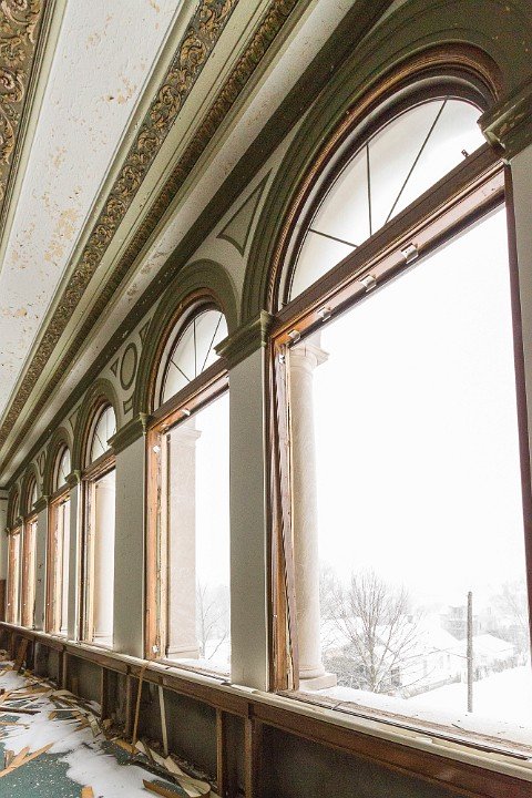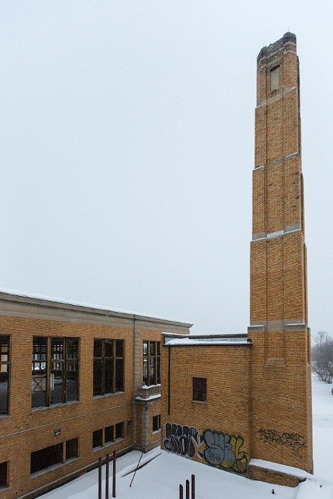 Jackson is one of Detroit's more unique schools in terms of design, using orange brick, masonry quoins along the edges of the building, and balustrades along the roof. Two lanterns are located above the main entrances facing the street. Though large, they appear to be purely ornamental, and are empty. The layout is fairly typical of schools designed in the late 20's, with a main hallway along which classrooms are located, and wings located on the ends. Jackson has an extra classroom wing on the north side of the building, and a cafeteria wing on the south side. Located in the center are the auditorium, which took up two floors, and a library on the third floor. The plan allowed for easy expansion of the school should the need arise.